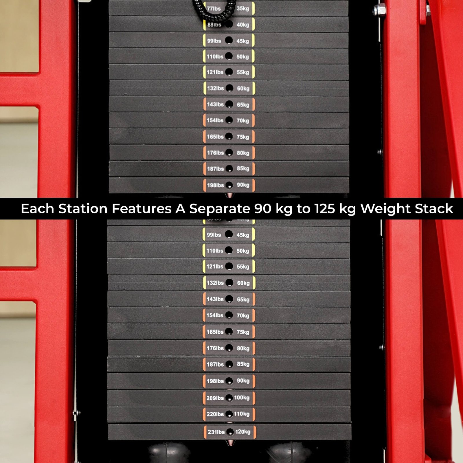 Choose 90 to 125kg, or custom per station |