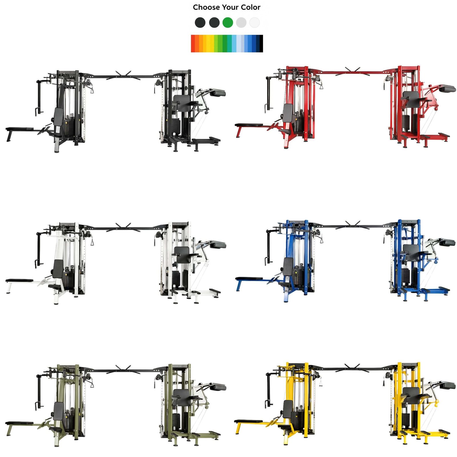 A versatile, compact, and modular solution designed for serious commercial gyms. Built on the robust Hunky Falcon Series platform, this Multi Station system allows customization in color, configuration, and weight stack per user — supporting 7 users simultaneously for varied workout needs.