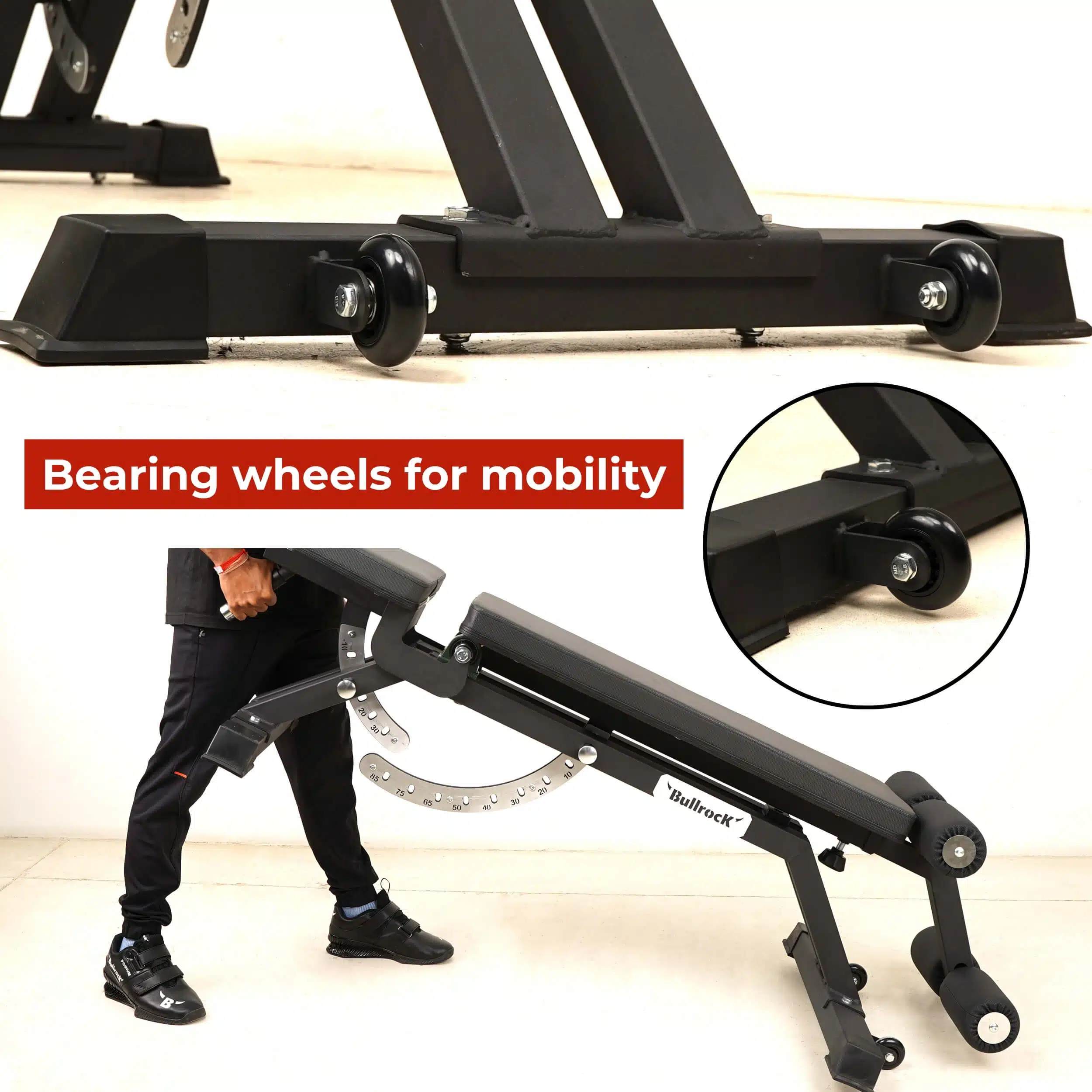 4. Handle and Wheels for Portability: Urethane grip handle and wheels make this heavy-duty bench easy to move and store.