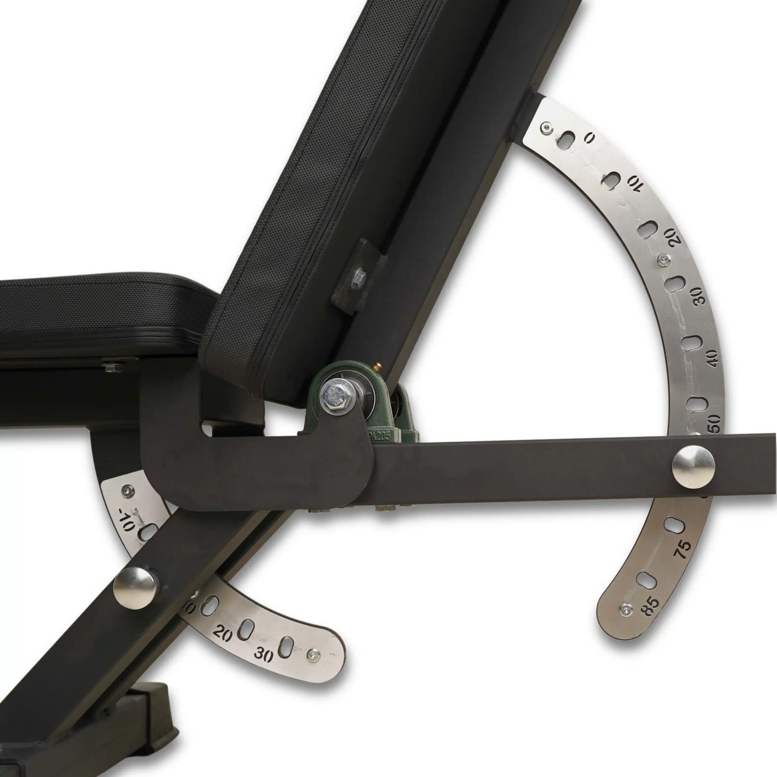 The laser-cut degree markings on a stainless-steel guard plate, and the aluminum pop-pin and pillow block ball bearing system ensure secure and easy angle changes.