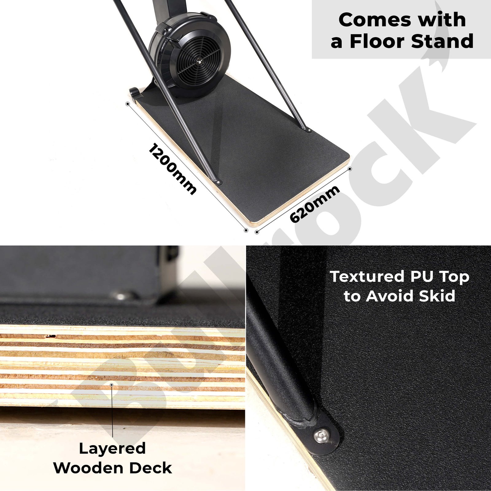 - Â Â The Ski machine Mounted on a wooden floor deck with textured PU top.