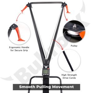 The pulling movements are made smooth by a high strength yet lightweight drive cords which glides over the pulley as you ski. They are connected to an ergonomic plastic handle for a secure grip suitable for any hand size. The steel construction and support frame make the equipment sturdy.