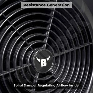 Vayu9 uses air flow to build resistance based on your pull. The spiral damper regulates air flow inside the flywheel, which generates resistance as more air flows in. With 10 adjustable resistance settings, it is designed to give you a smooth feel as you pull.