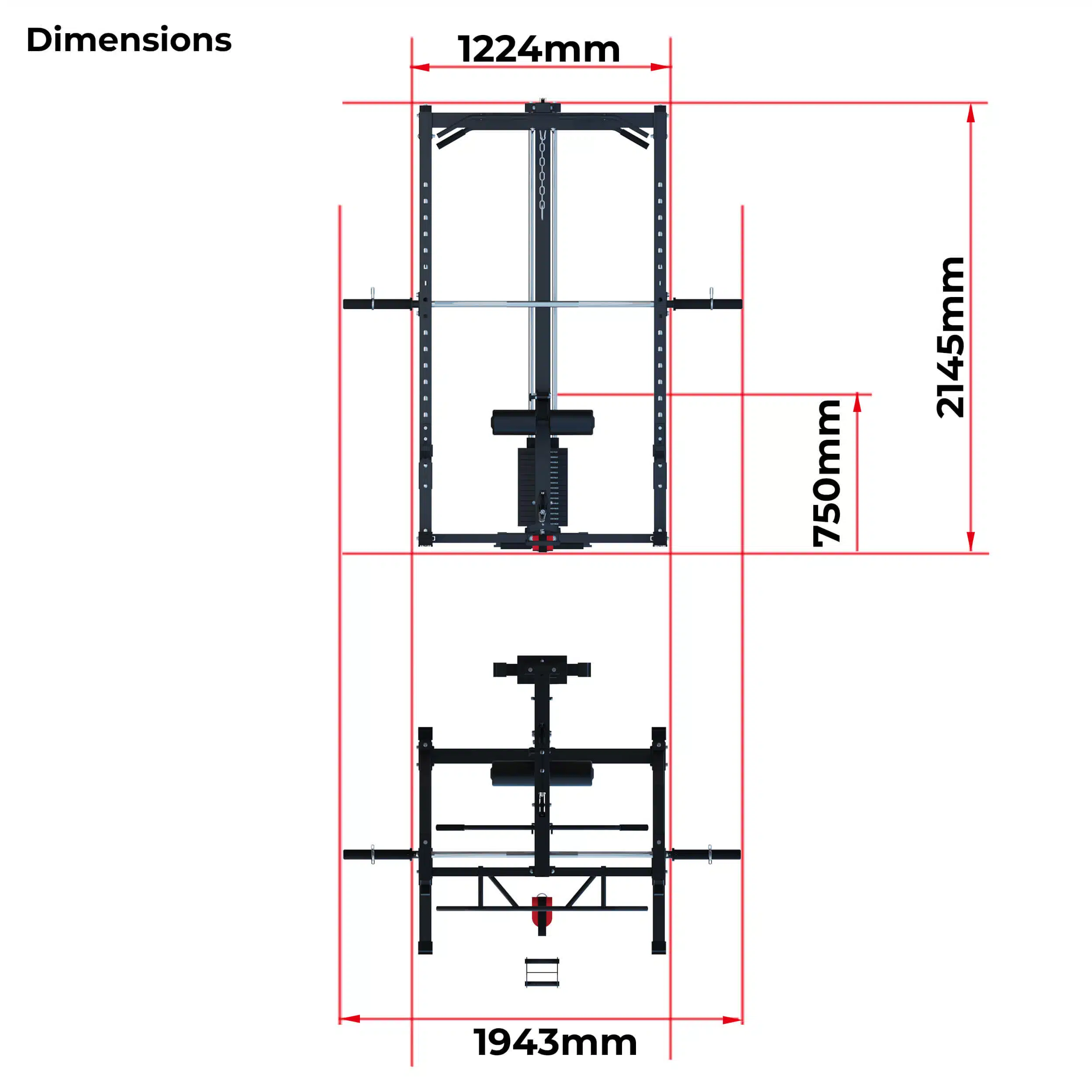 OX7 All-In-One Half Rack With Smith & Lat/Row – 90kg
