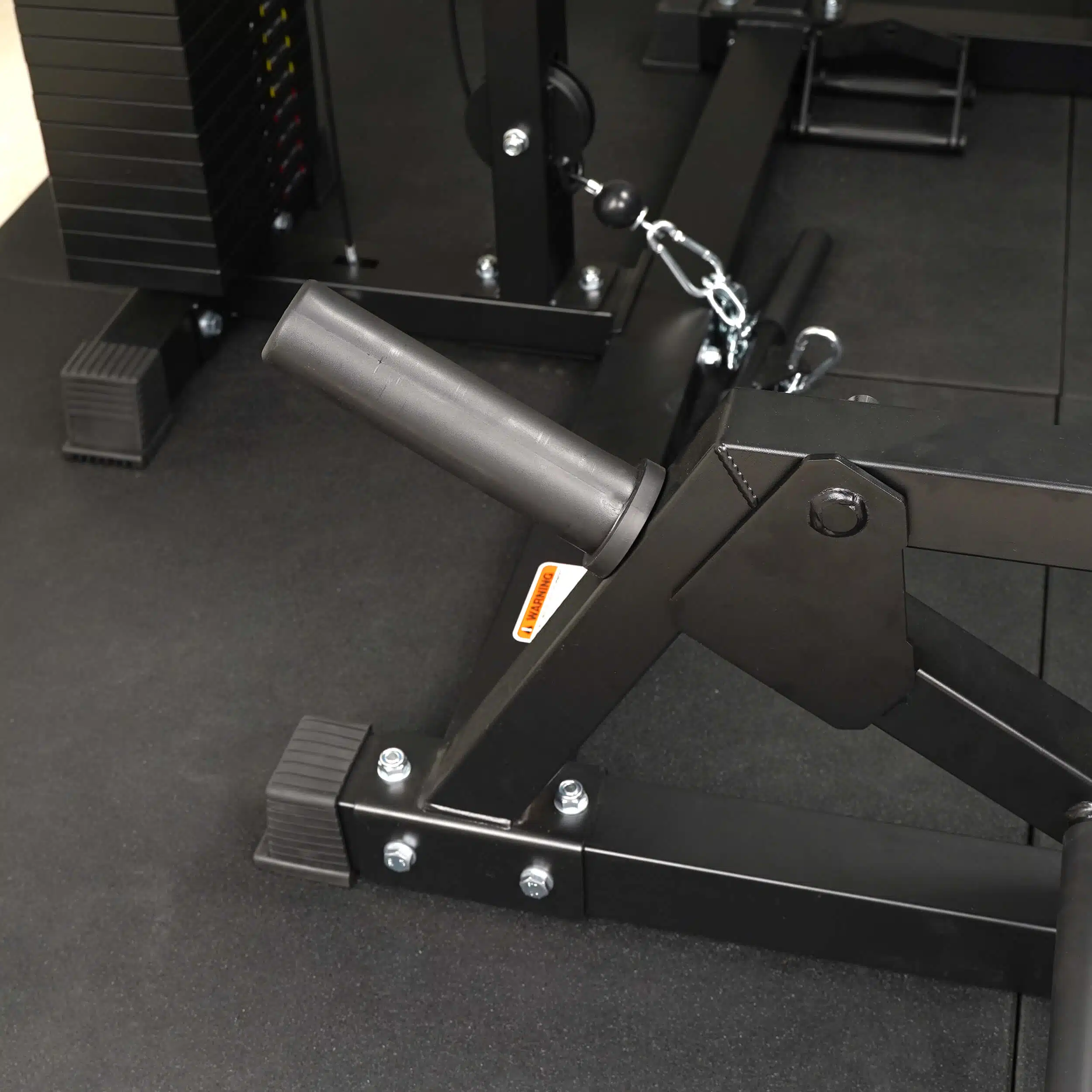 Adjustable Leg Locking Rollers can be turned parallel to upright when performing Biceps/ Triceps Cable Exercises.