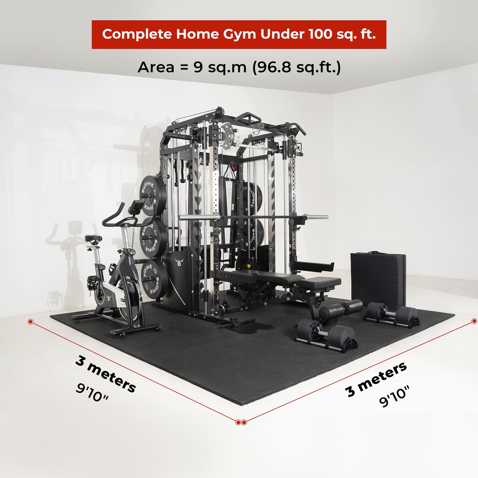 You can set up a complete home gym even under 100 square feet space (10 x 10 feet), thanks to the versatility of Ox Pro 11. If you are seeking the best value equipment for a home gym or a small personal training studio, consider the OX Pro 11.