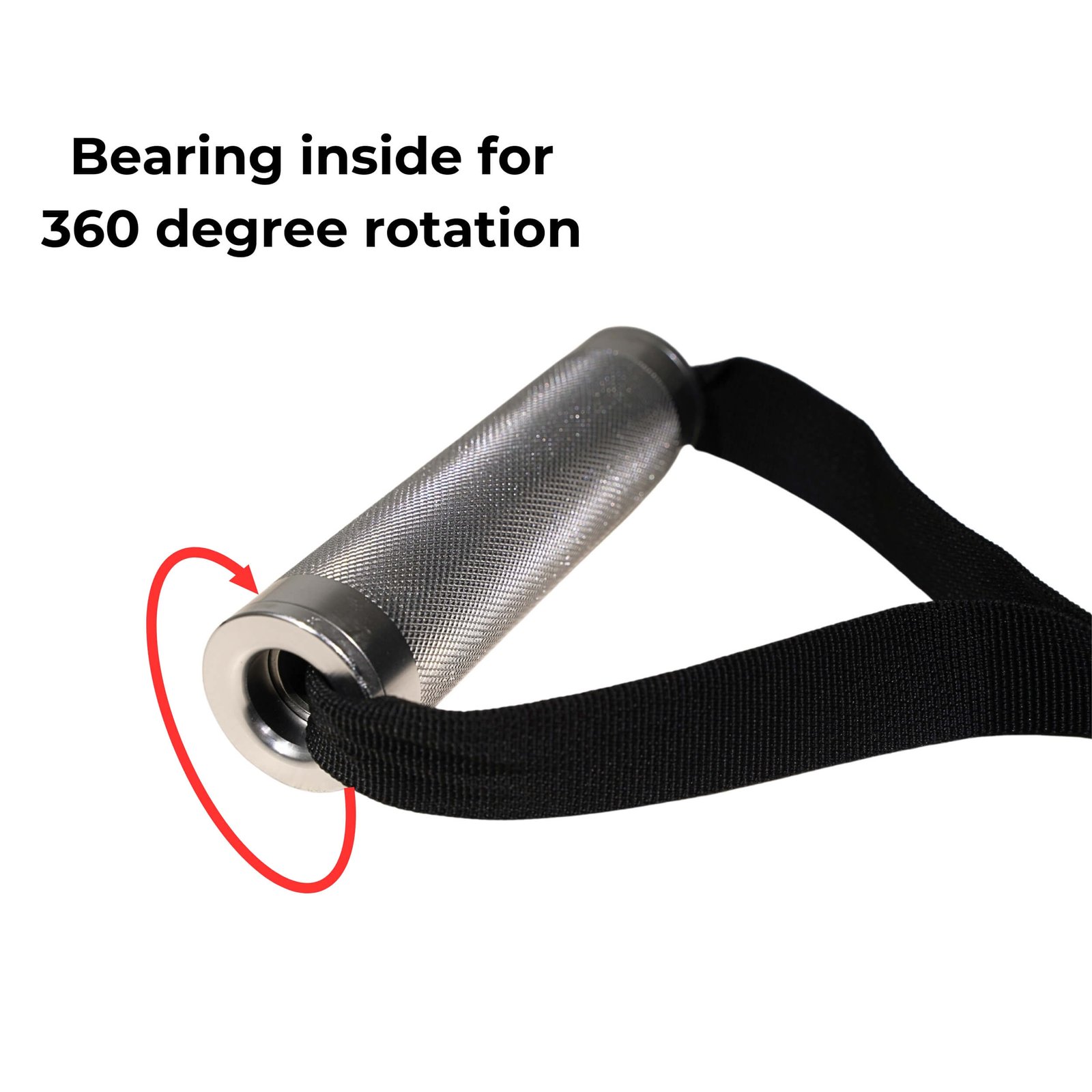 This variation gives a smooth feel when doing curling or rotation movements, thanks to bearings inside handle. The difference between regular and this handle is clearly noticeable especially when you do bicep curl or shoulder external rotations. It features 35mm diameter with mild knurling.