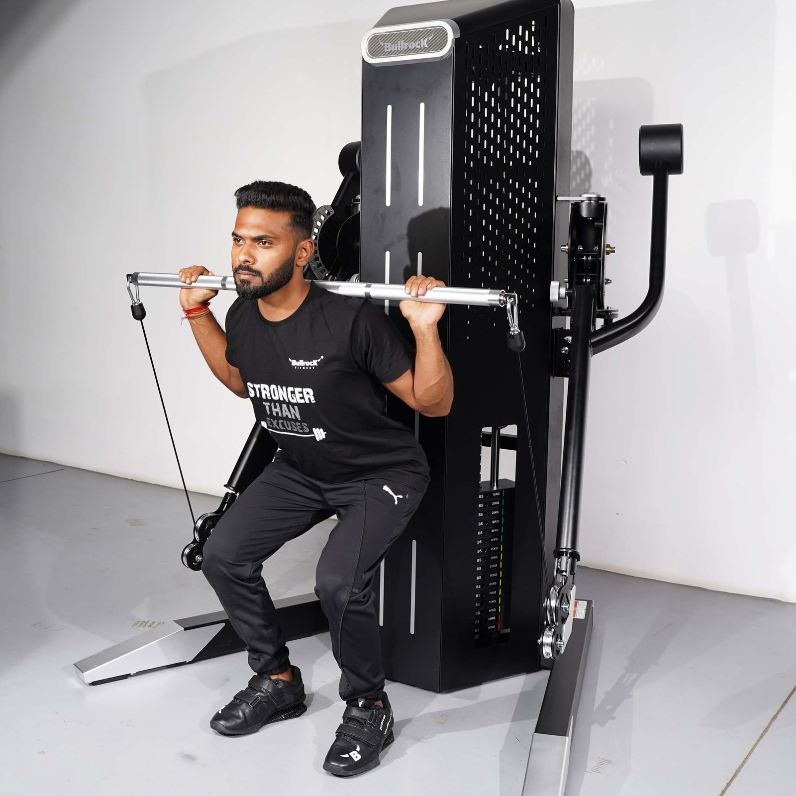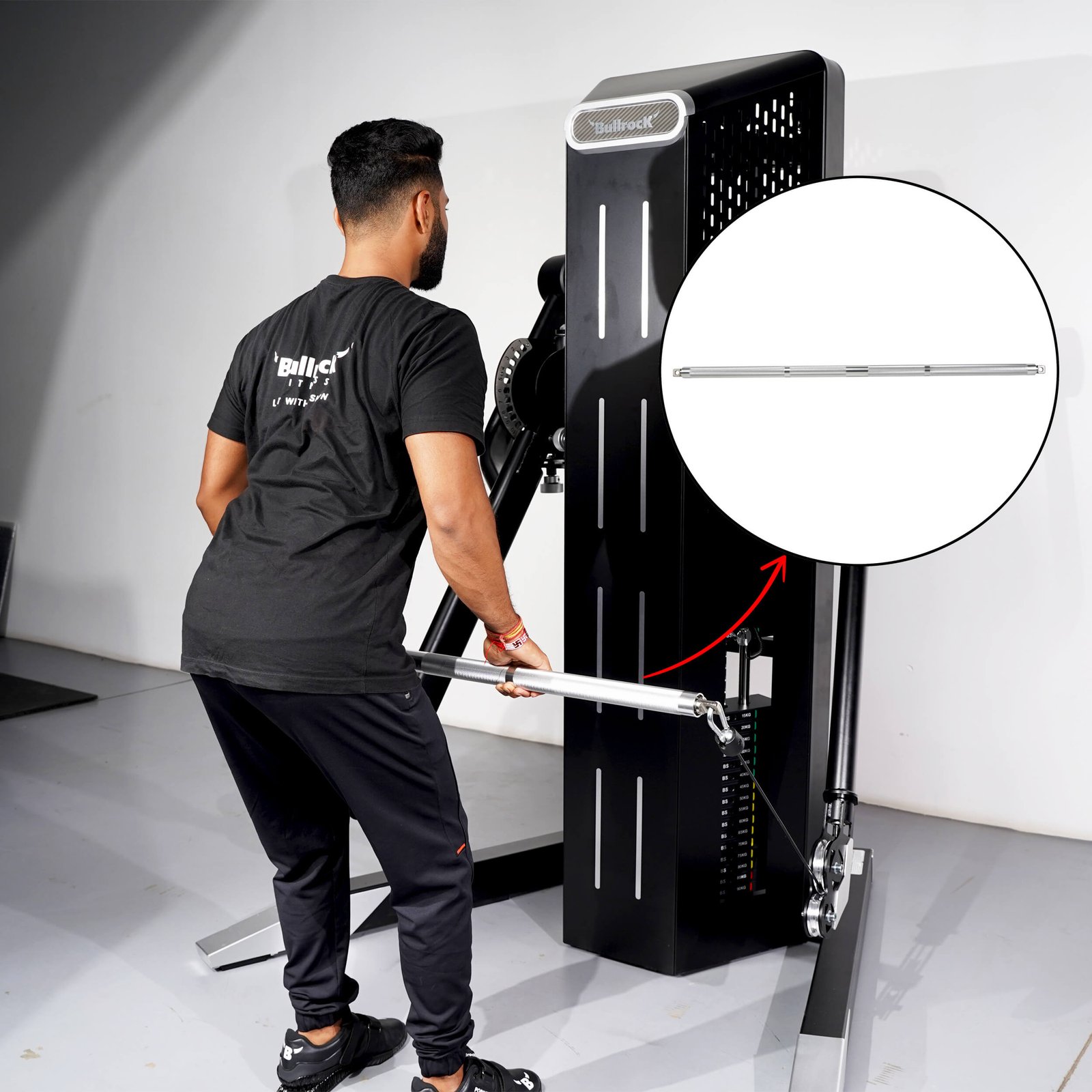 In most machines the initial stack weight of selectorized machine is 5kg, when a heavy handle attachment is connected, it may fall or create a temporary play in stack weight, which leads to inconvenience for a user.