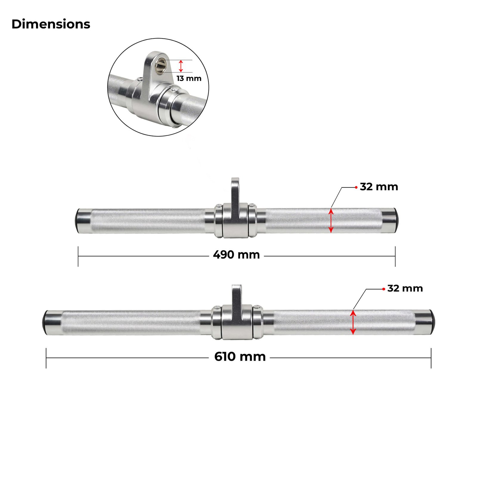 Aluminium Straight Bar Handle 24″ – Those who want wider handles to perform wide grip exercises can choose 24″ version. For example, bicep curl, rowing etc.