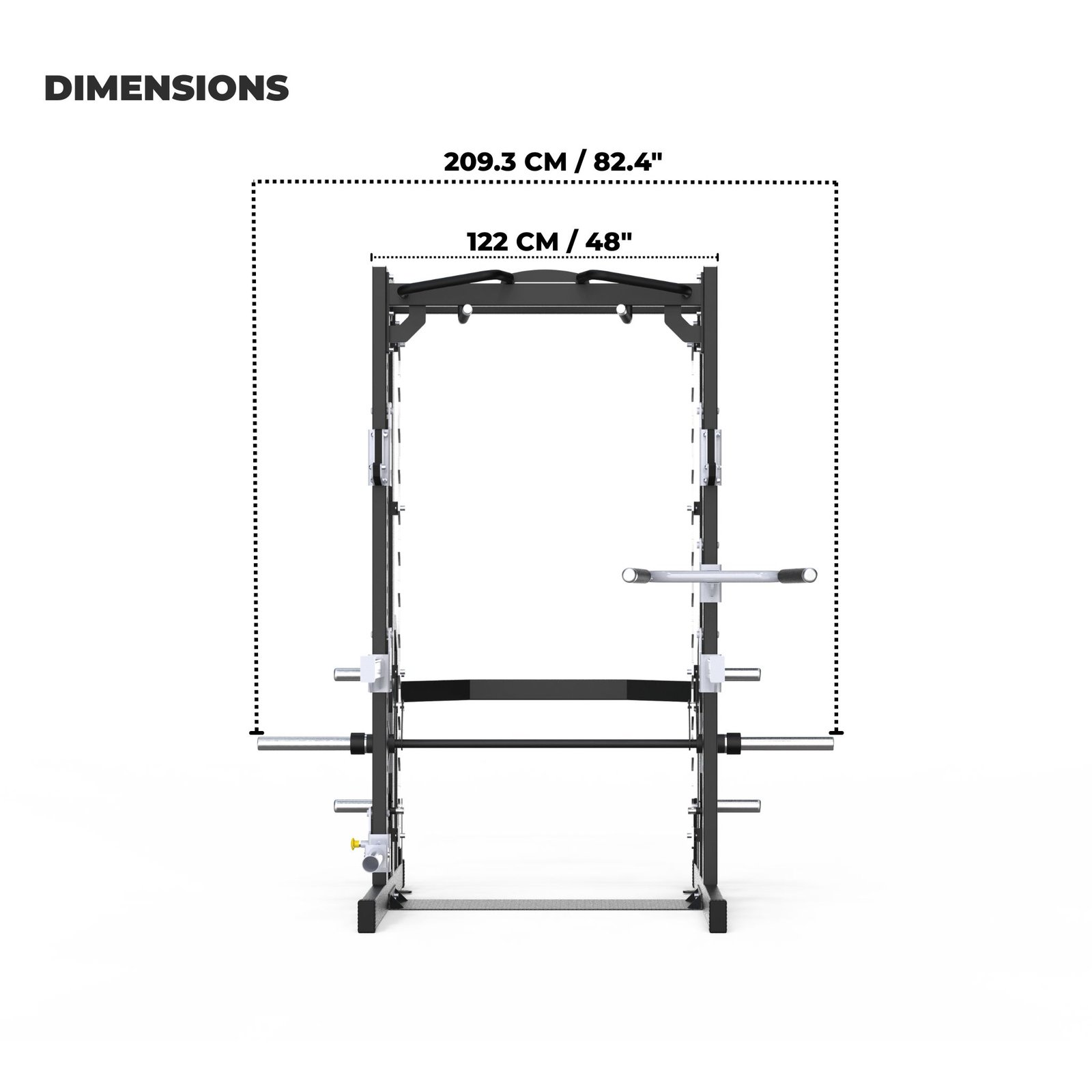 โขย Combines free weight rack training and guided Smith training in one machine.