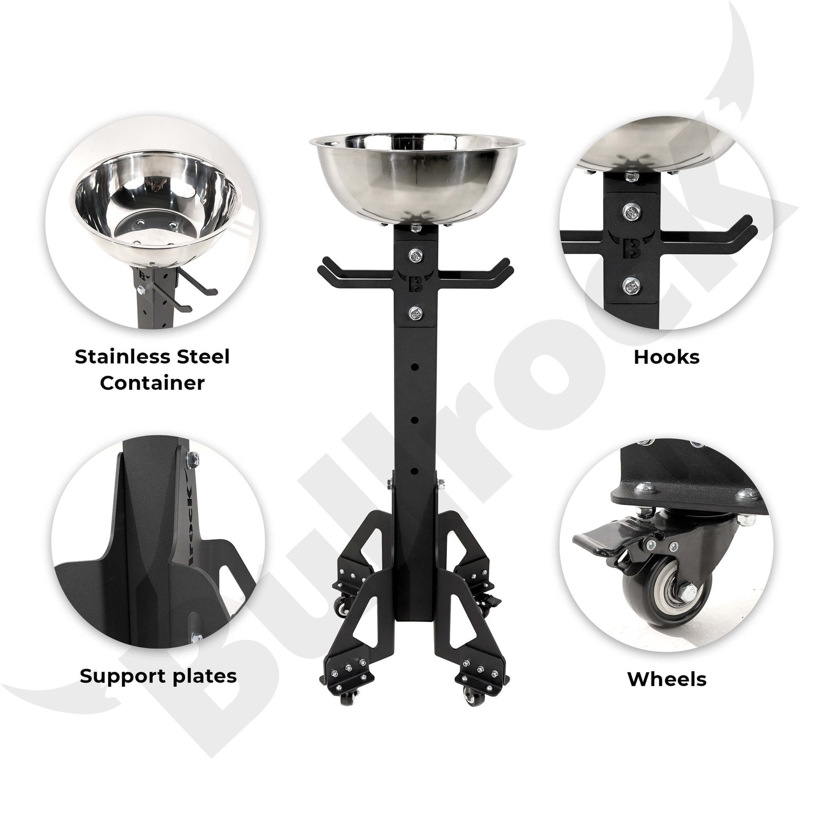 A standalone unit, this chalk bowl stand features a stainless steel bowl of 360mm diameter and 130mm depth, and can hold sufficient amount of chalk for multiple athletes training together in an arena. This is easily portable in your workout area via caster wheels. The unit stands tall a 1025mm for a convenient access between the sets.