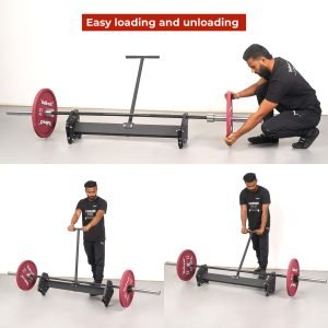 This full Deadlift Jack takes the hassle out of loading and unloading those heavy loaded barbells, and also move them around easily. Works for both ends at once, simply hook the jack under the barbell, move the handle and let leverage do the work for you!