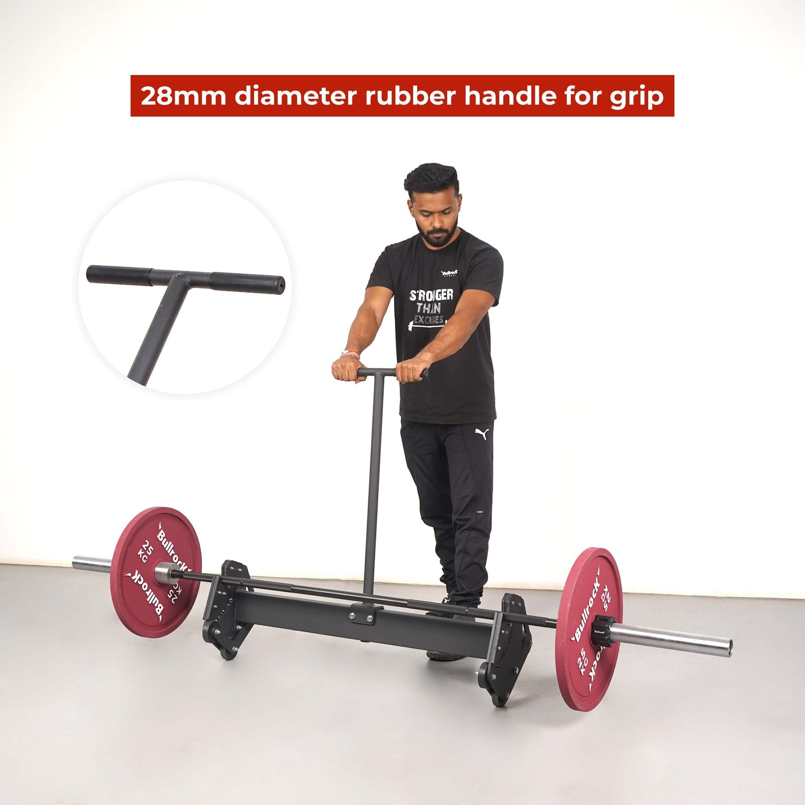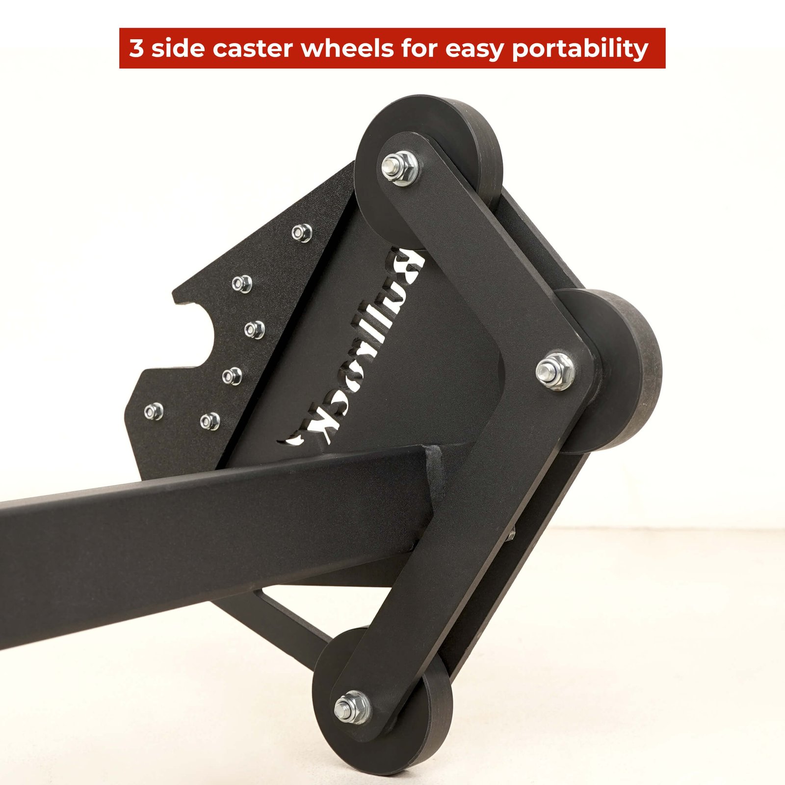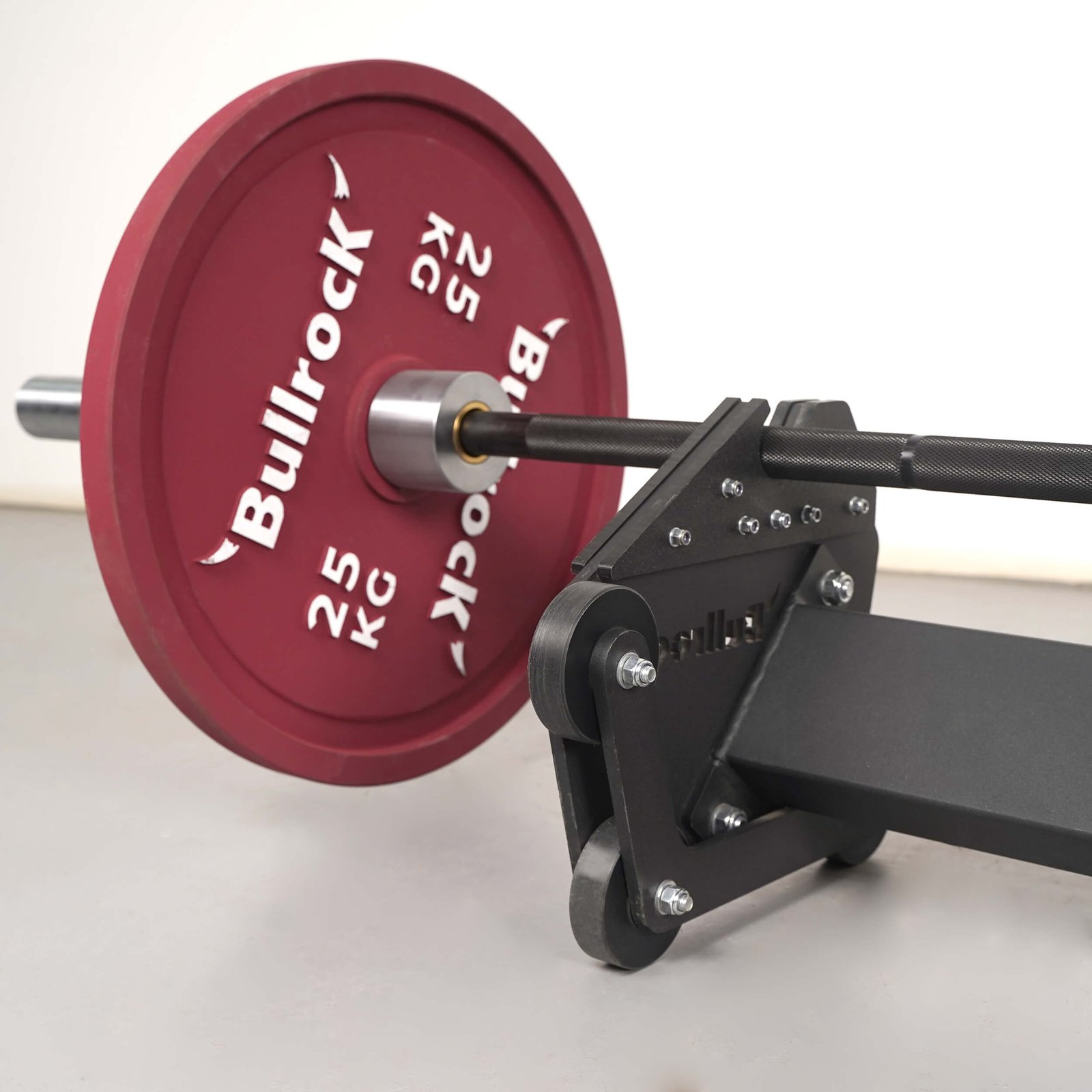 This full Deadlift Jack takes the hassle out of loading and unloading those heavy loaded barbells, and also move them around easily. Works for both ends at once, simply hook the jack under the barbell, move the handle and let leverage do the work for you!