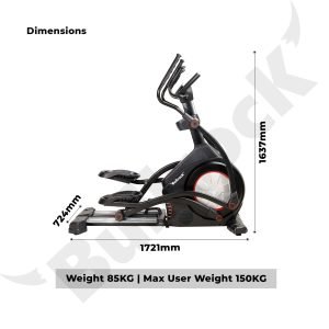 It weighs 85kg and can withstand a max user weight of 150kg, and takes an optimal footprint of xyz. It is easily portable via wheels.