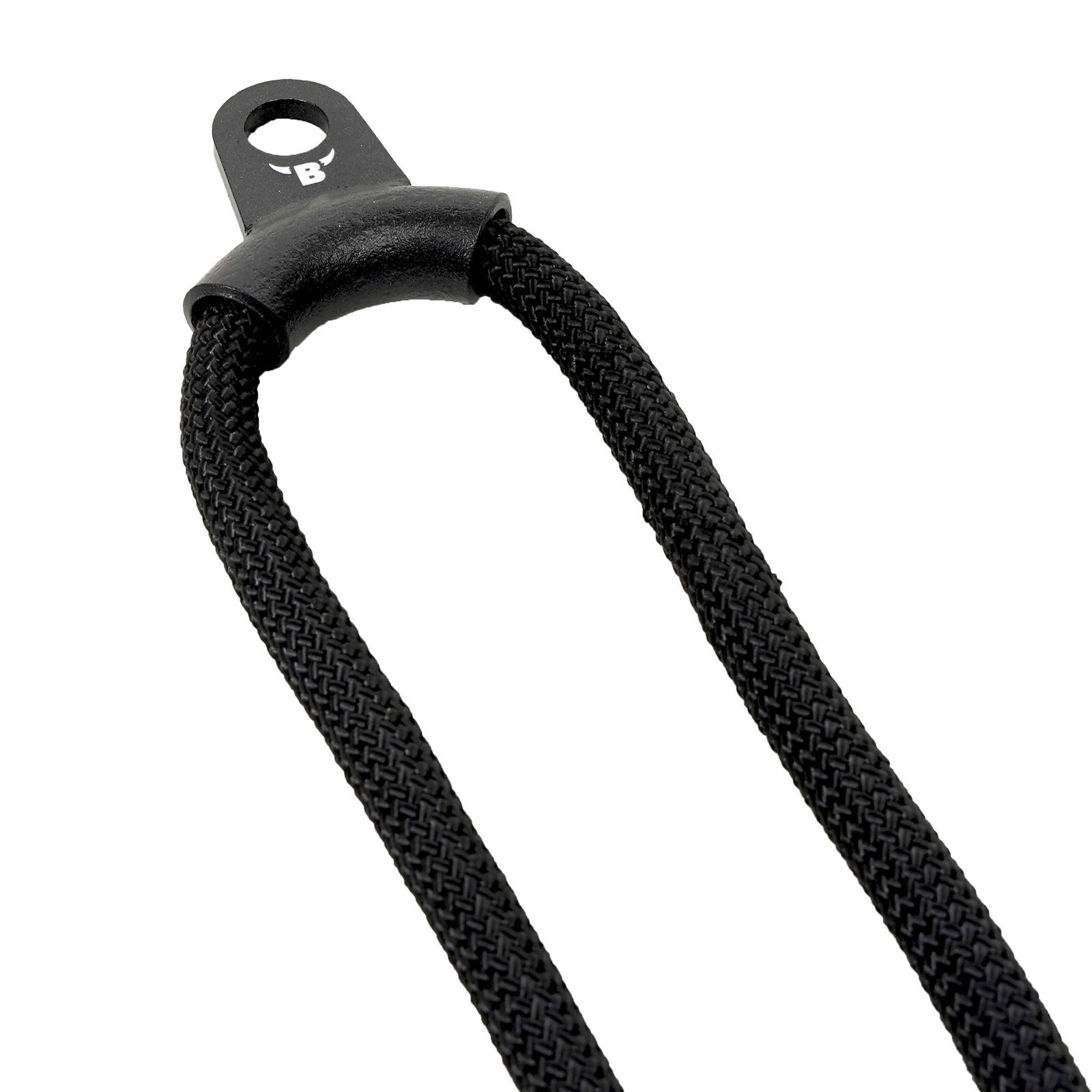 It can be easily attached to any cable machine via carabiners and is 435mm long from the hooked centre.