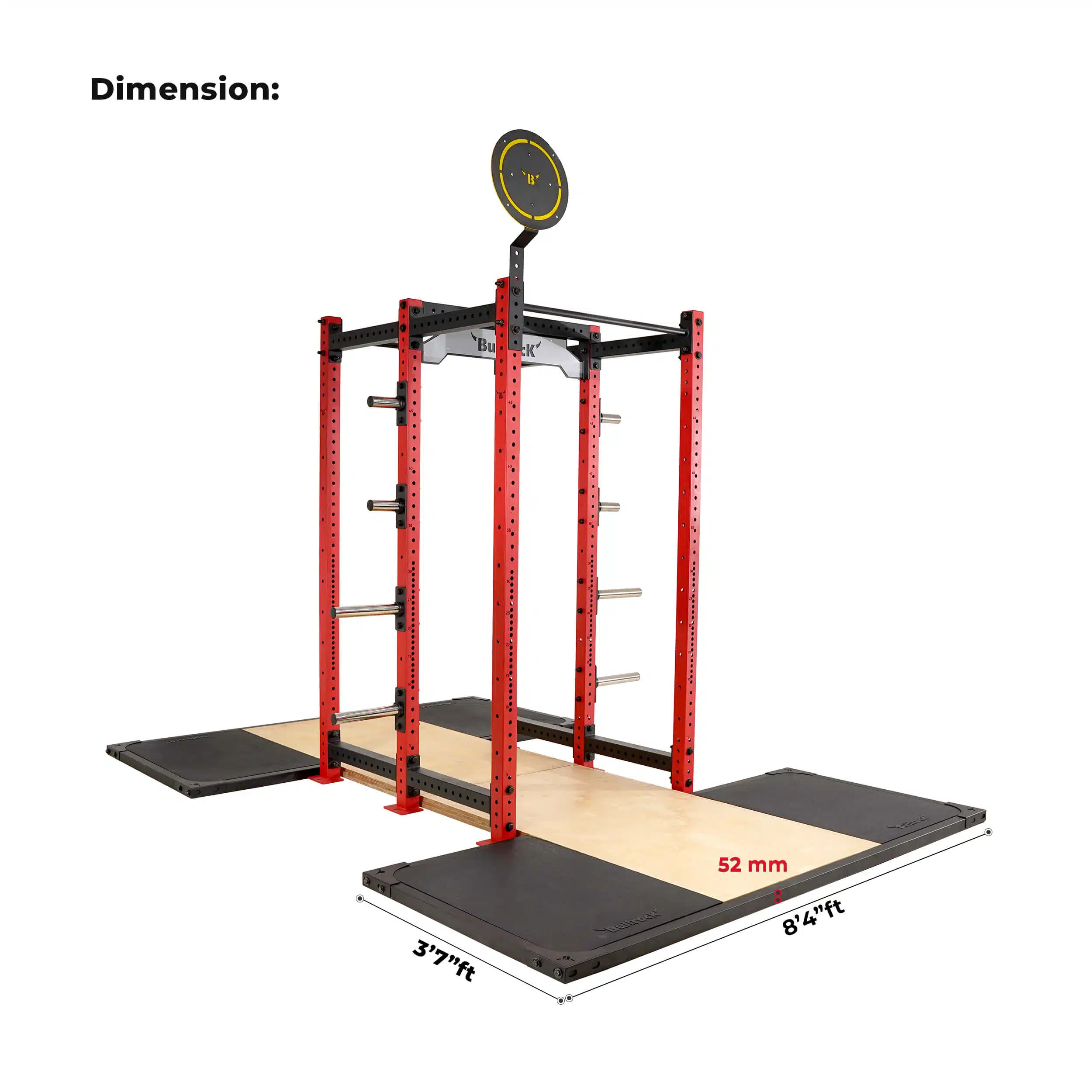| 2 | Giga T Platform For Gorilla Power Rack / Flat Feet Rack / 6 Post / 4 Post PDLPR | 8′ x 3’3″ | 8’4″ x 3’7″ | 52mm | 34mm Natural Rubber Tile + 18mm Birch Ply | Good | ₹41,941 | 7’5.4″ |