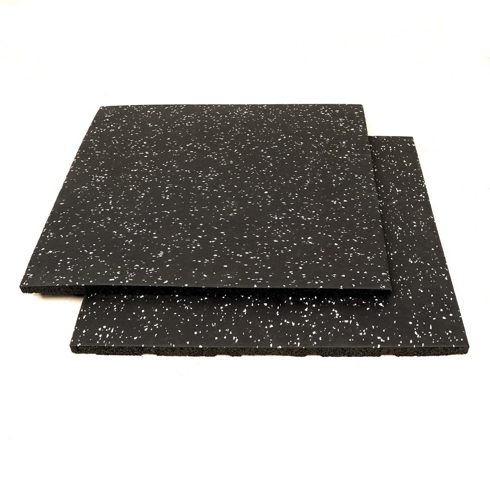Gym Rubber Tiles – Black & White SBR Top 20mm thick 50x50cm (/Sq mtr price)