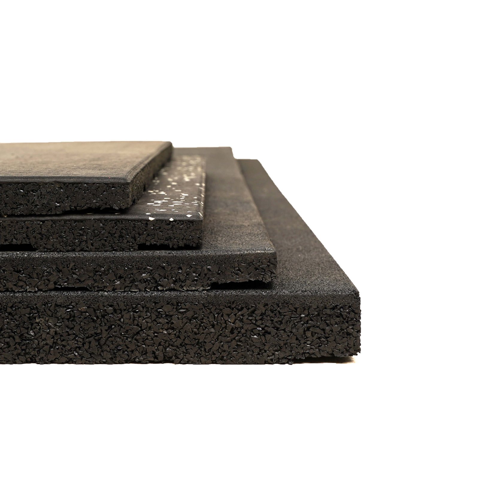 The top SBR layer with added black and white speckles combines durability, shock absorption, and slip resistance with a sleek, modern aesthetic look.
