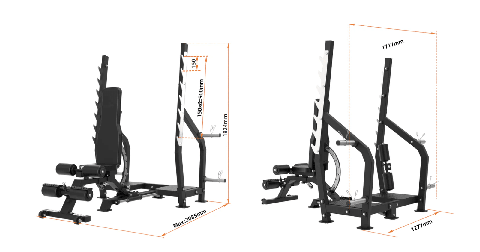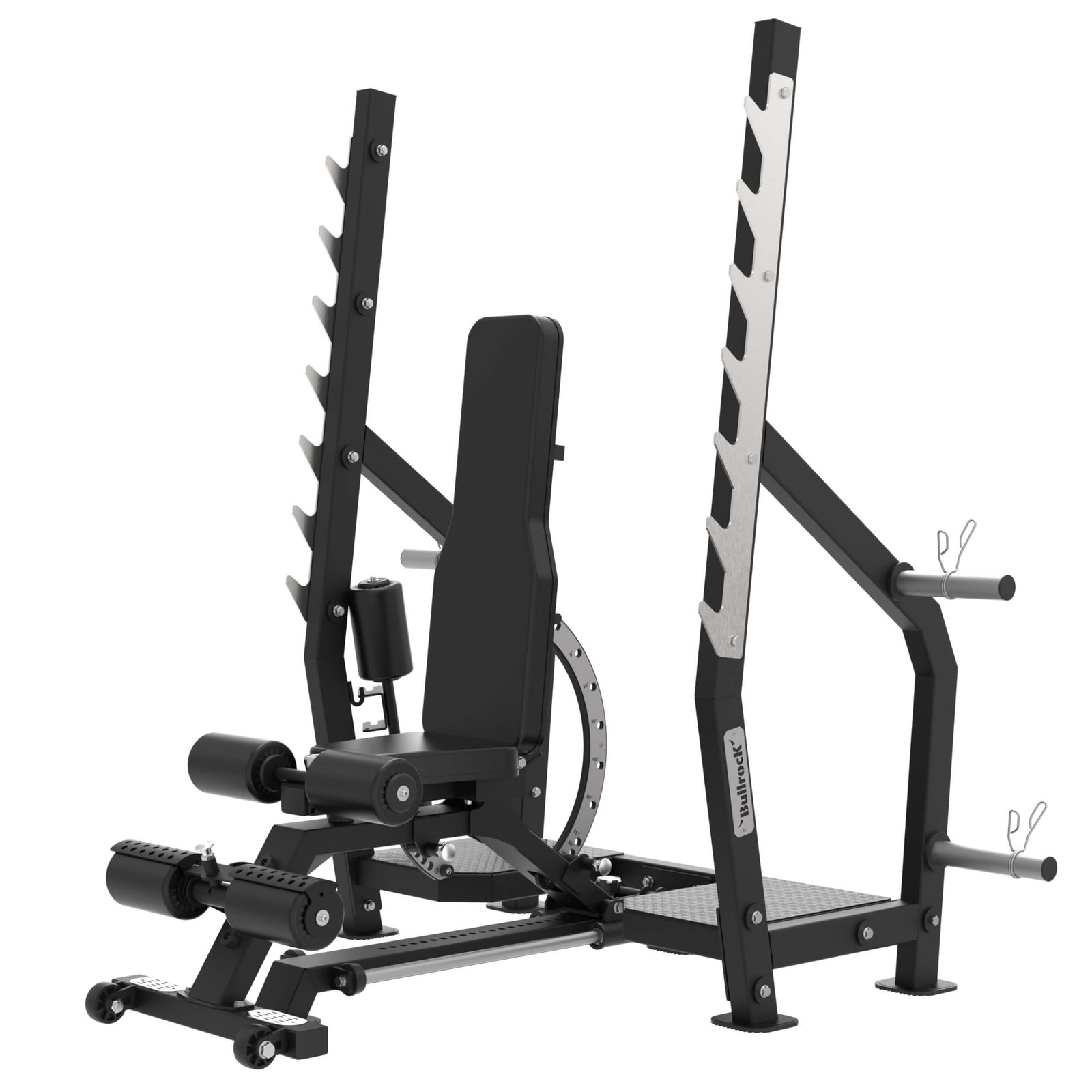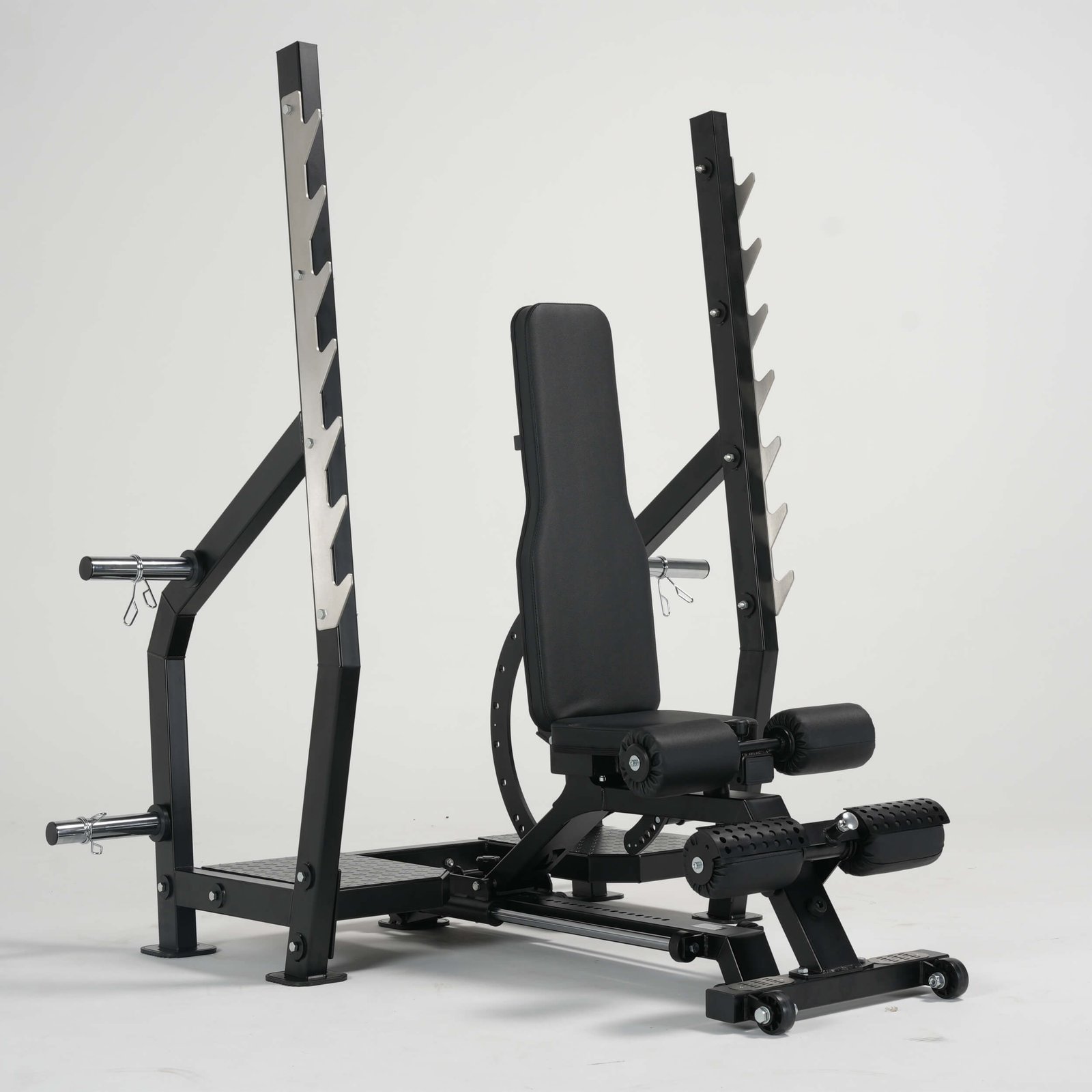 The Lancer Bench saves your space by integrating 4 stations into single Olympic Bench footprint. Recommended for a Commercial Gym or a PT studio, where space optimization and biomechanics are priority.