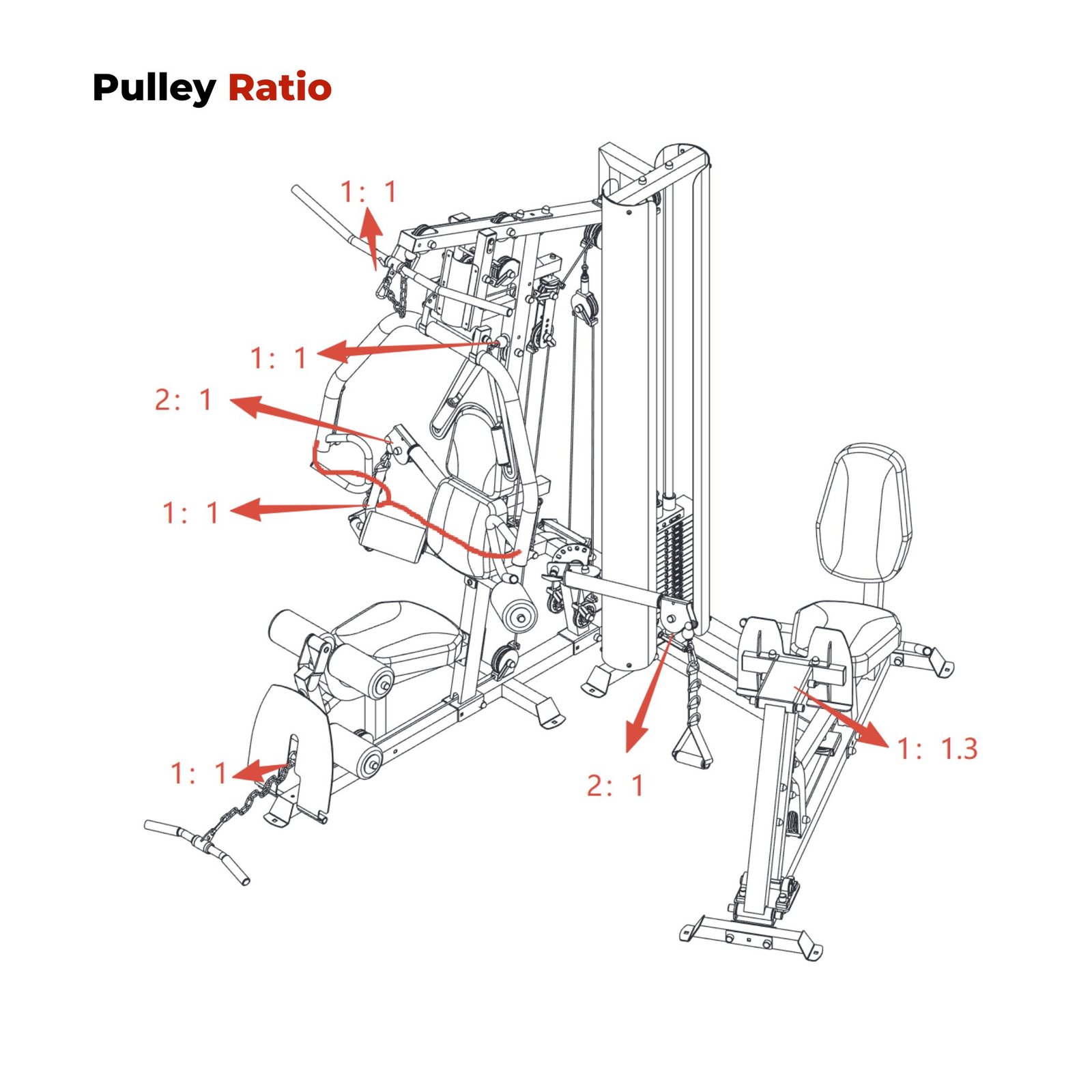 • Ab Crunch / Mid Pulley: 1:1