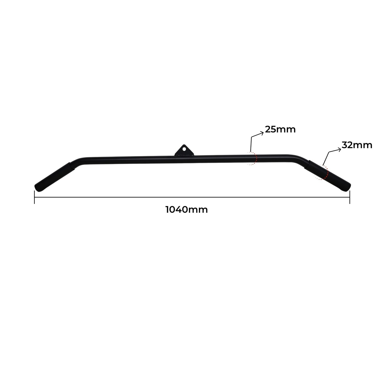The OX Lat Pull Down Bar Handle is a budget-friendly attachment designed for effective wide- and close-grip lat pull-downs in home gym setups. The bar features 32mm foam grips on the wider angled sections for comfort during wide-grip training, while the 25mm center section offers a natural steel grip for narrow or supine grip lat pull-downs.