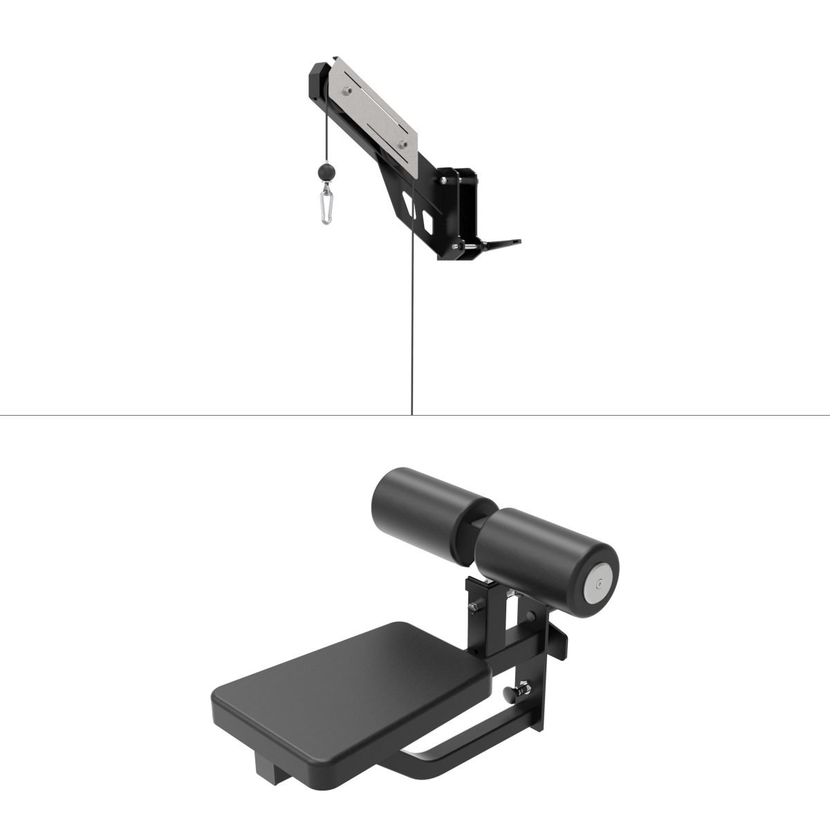 Compatible with All in One trainer OX Pro 11, OX Pro 21 when attached to front upright, this attachment enables various lat pull down exercises such as wide grip, close grip, reverse grip, and single arm etc.
