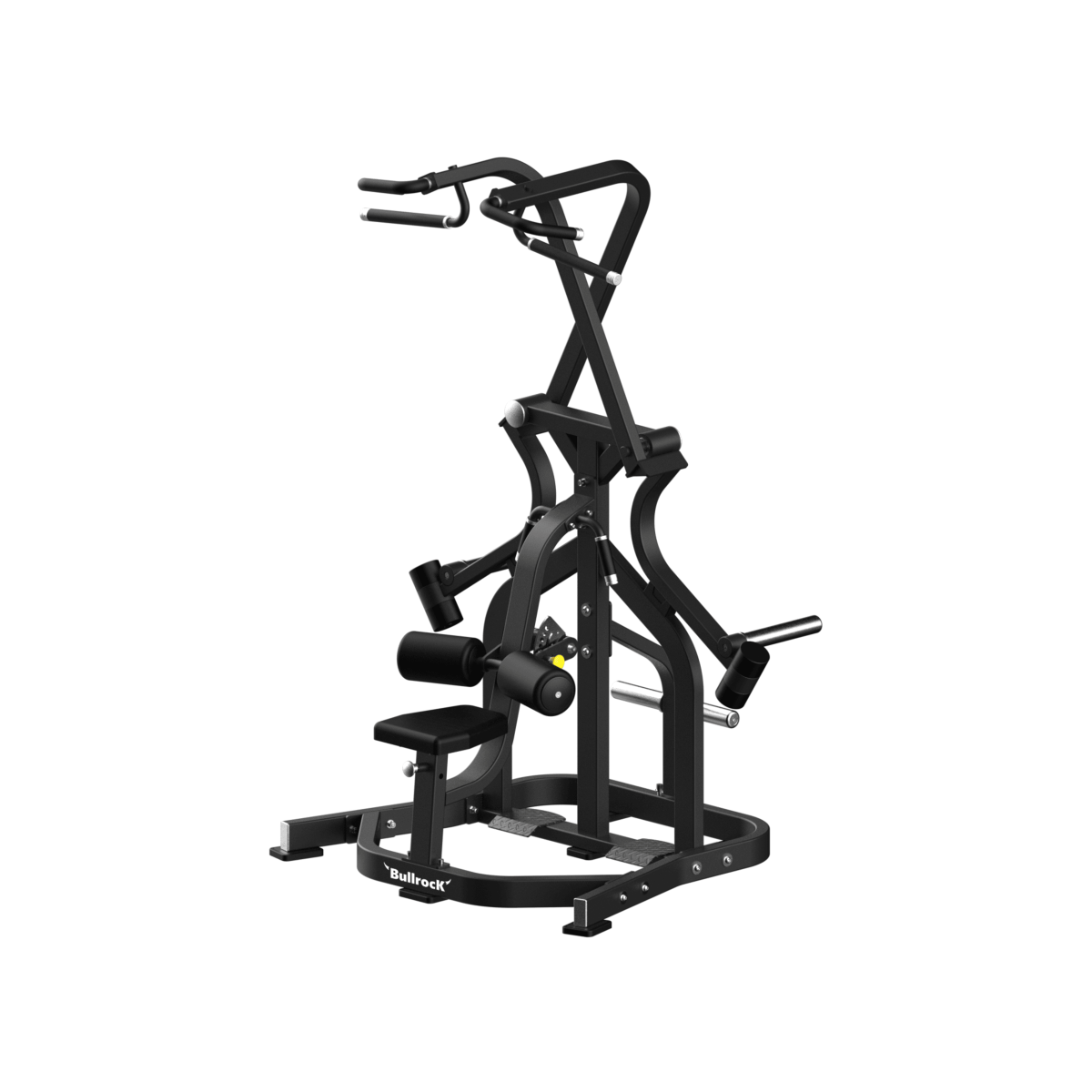Unique design of Plate Loaded Lat Pull Down machine with ergonomic seat and roller adjustments, Multigrip handles for pull down to target your back muscles.