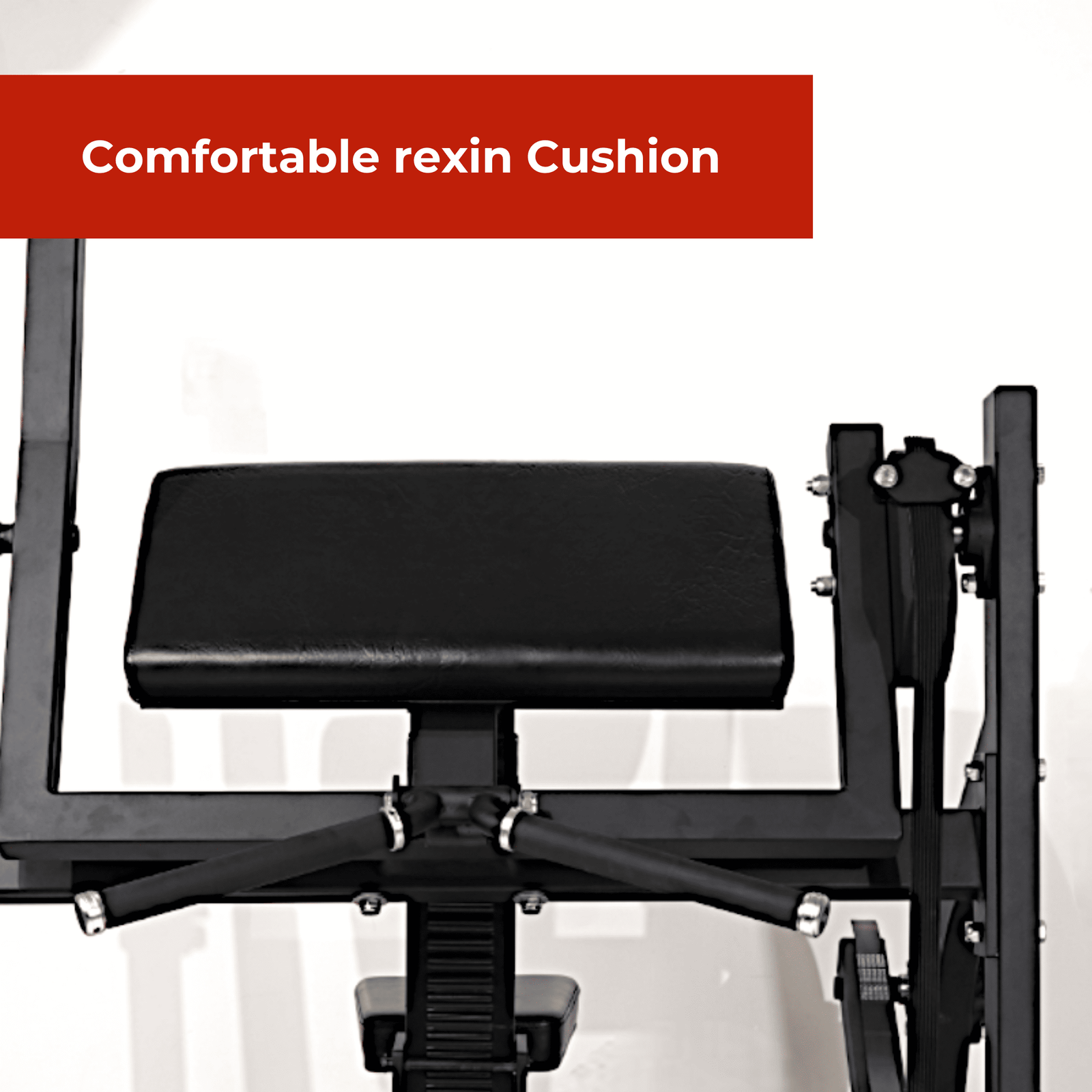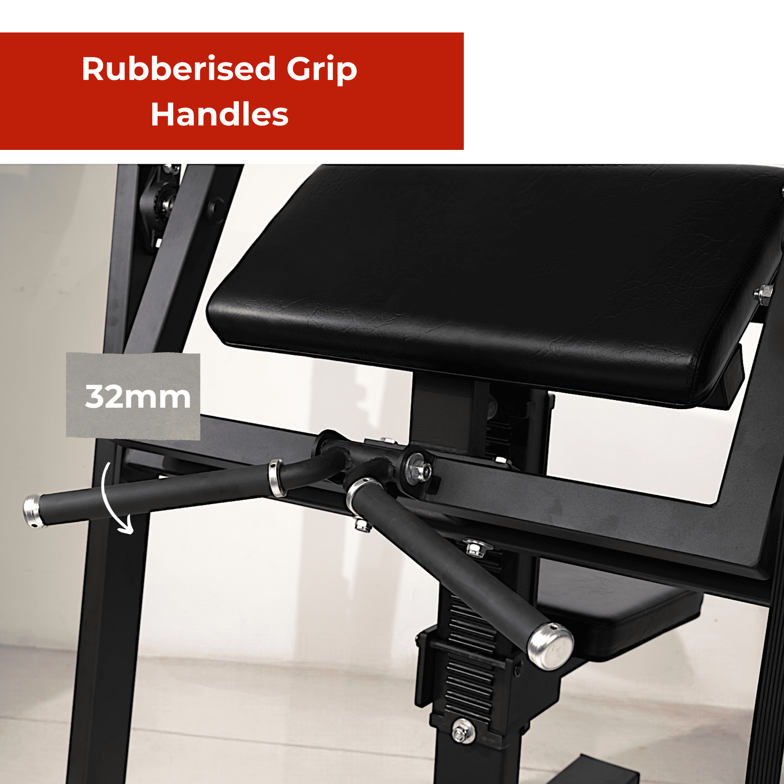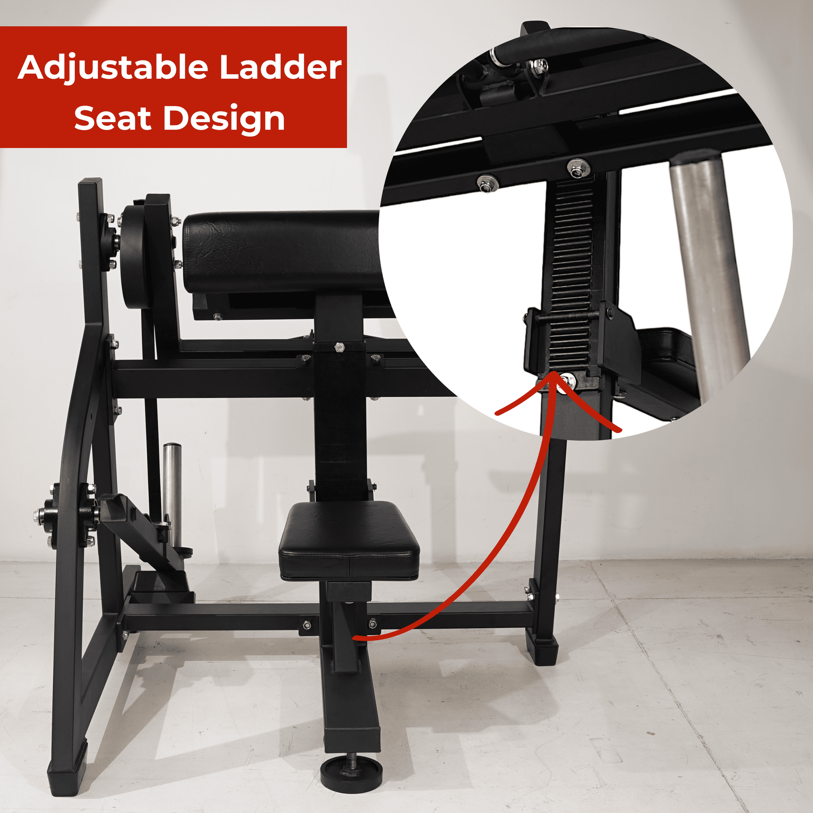 The 270mm stainless steel loading horn allows for easy weight addition, while large rubberised grips accommodate both narrow and wide grip positions, offering versatility in your arm training. Also, The ladder seat adjustment allows users to find the ideal height for optimal form and comfort.