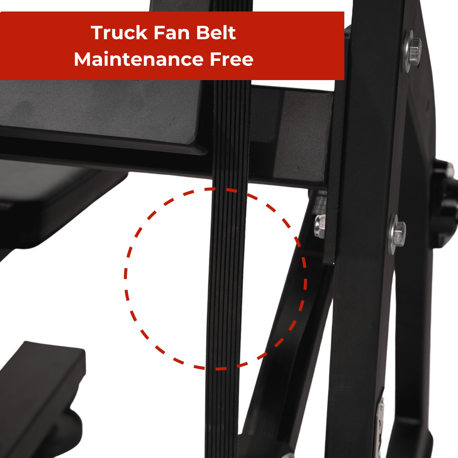 The cam mechanism, paired with a high-strength belt system, is fitted with bearings to provide unmatched smoothness. The belt, a durable truck fan belt, ensures long-lasting performance with no maintenance, delivering consistent resistance for years, making it suitable for commercial environments.