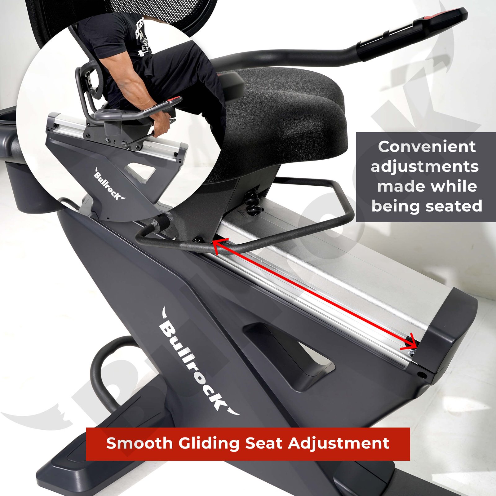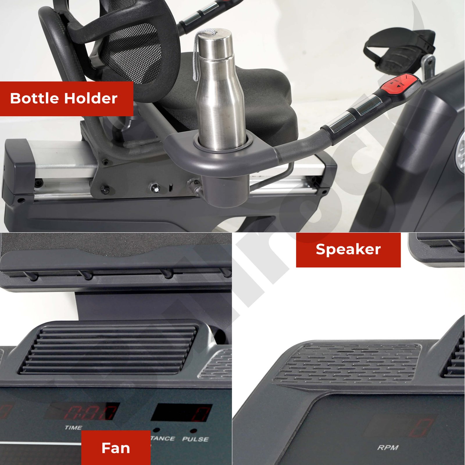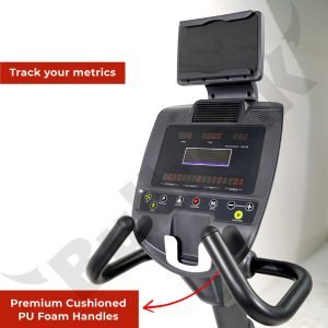 You can adjust the resistance, change seat positions and access the bottle holder, all while being seated and peddling, without bending or standing up. The pulse sensor handles are also positioned to be accessed while sitting in a recumbent position.