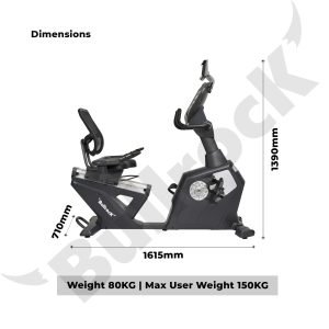 Boasting a robust and elegant design, this bike weighs 85kg and can take a user of a max weight of 150kg. It takes a footprint of 1615x710x1390mm and is portable via handles and caster wheels.
