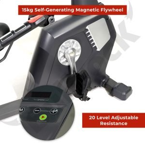 This recumbent bike features a reliable magnetic braking system and a self-generating 15kg flywheel, delivering a consistently smooth riding experience with 20 level adjustable resistance.  The handles are made of premium cushioned PU Foam. The LED display proves useful in tracking your metrics.