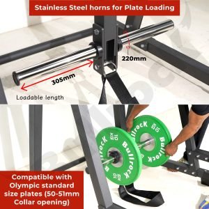 Works with simple mechanics, the Weight plates can be loaded on the SS horns and lifted via a lever arm pivoted with the pad. Horns are compatible with all Olympic Standard Plates, and can be loaded to increase weights. It features a belt which can be looped into your feet to utilize full range of motion for the sway.