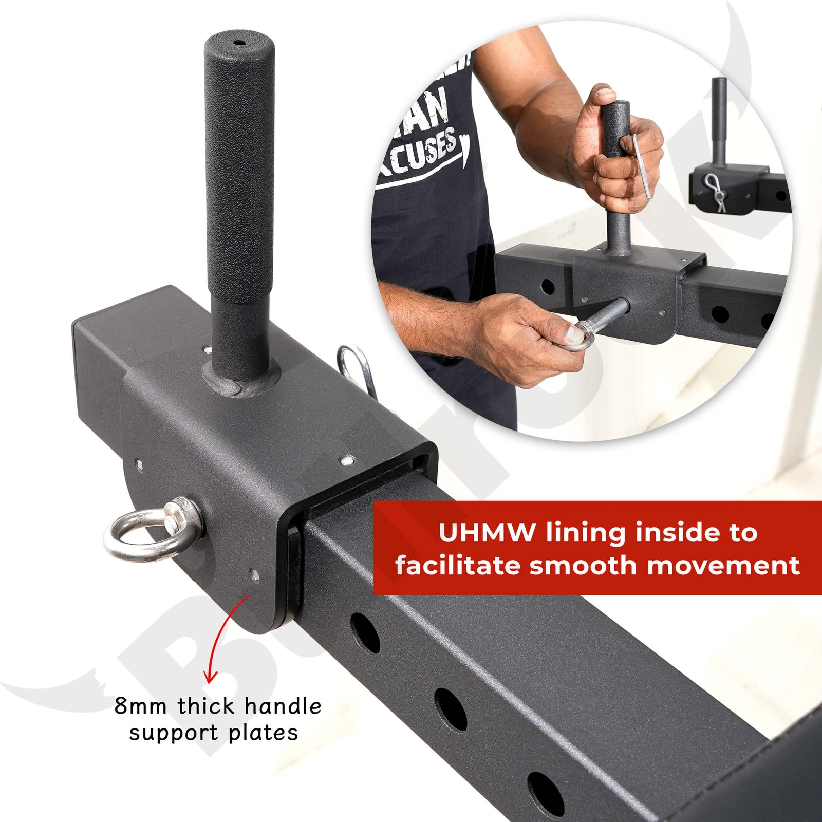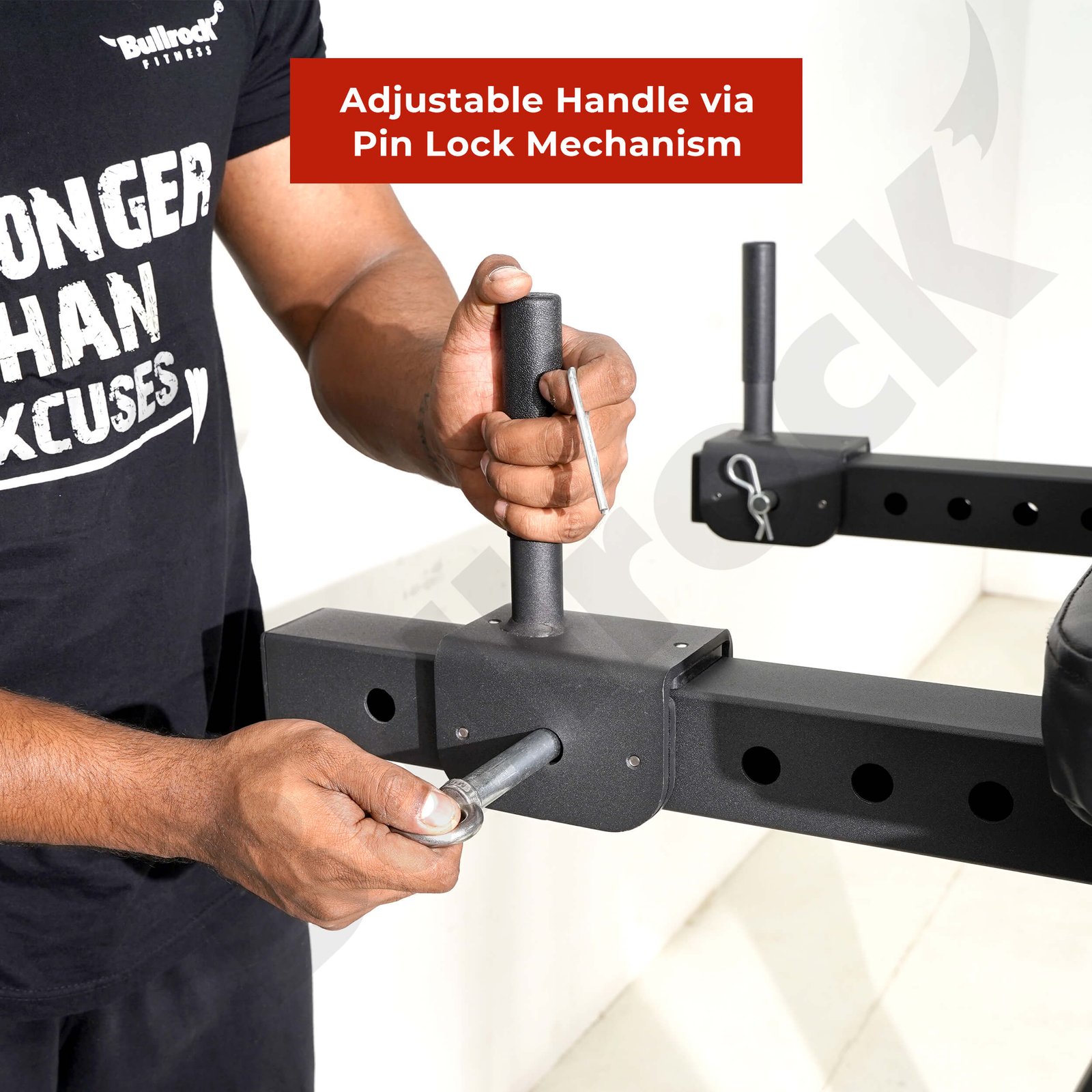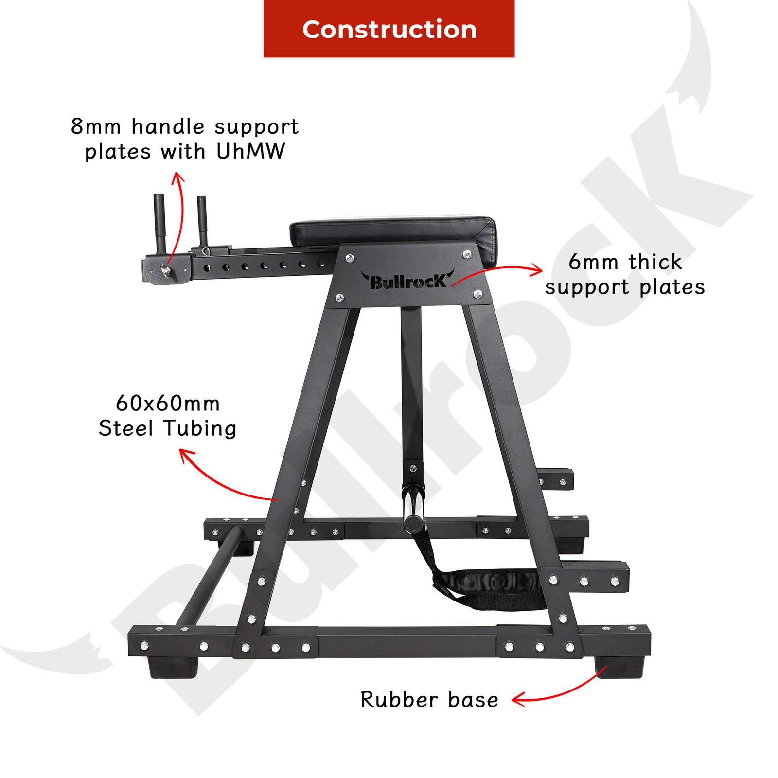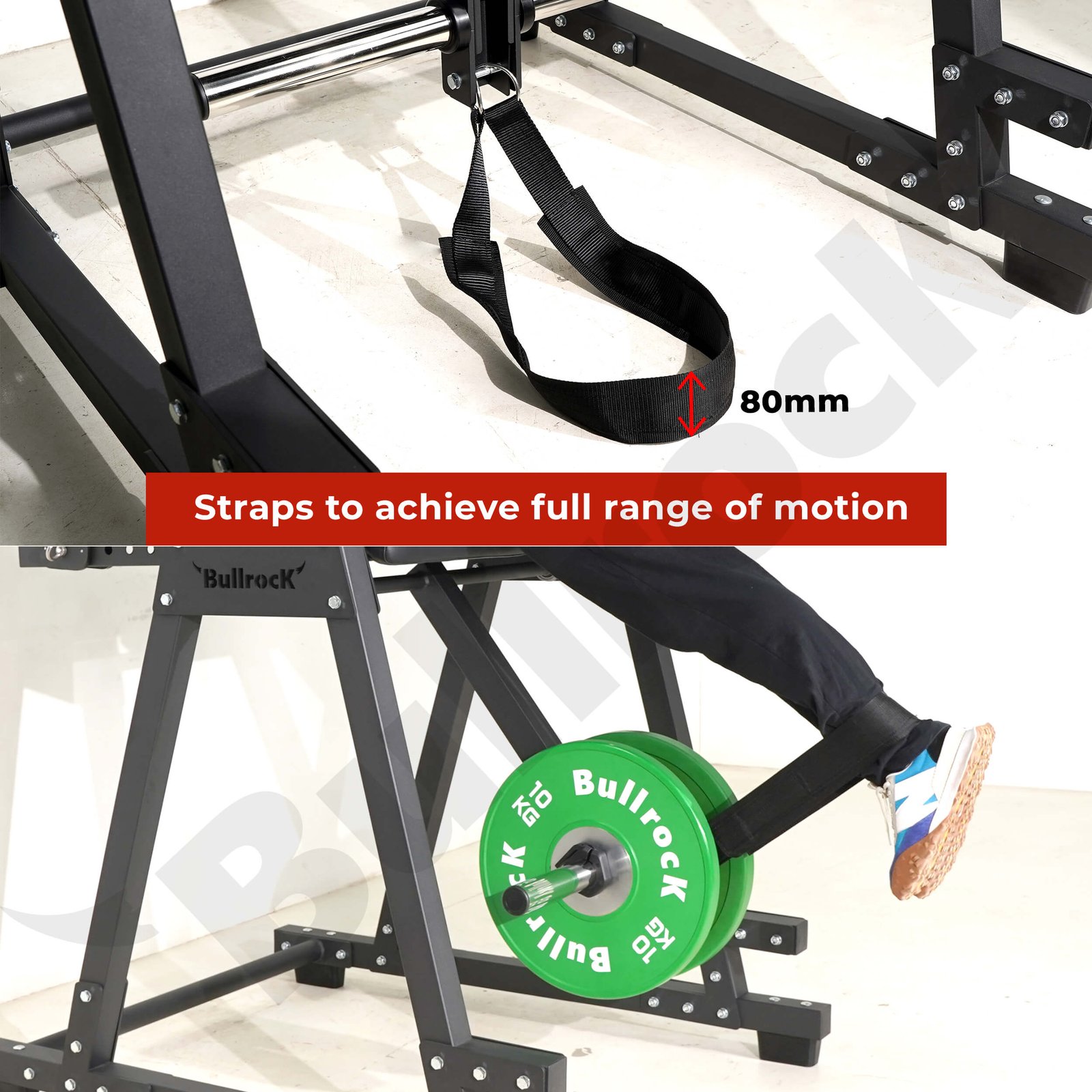 Works with simple mechanics, the Weight plates can be loaded on the SS horns and lifted via a lever arm pivoted with the pad, while driving strength from your back, glutes and hamstrings. It features a belt which can be looped into your feet to utilize full range of motion for the sway.