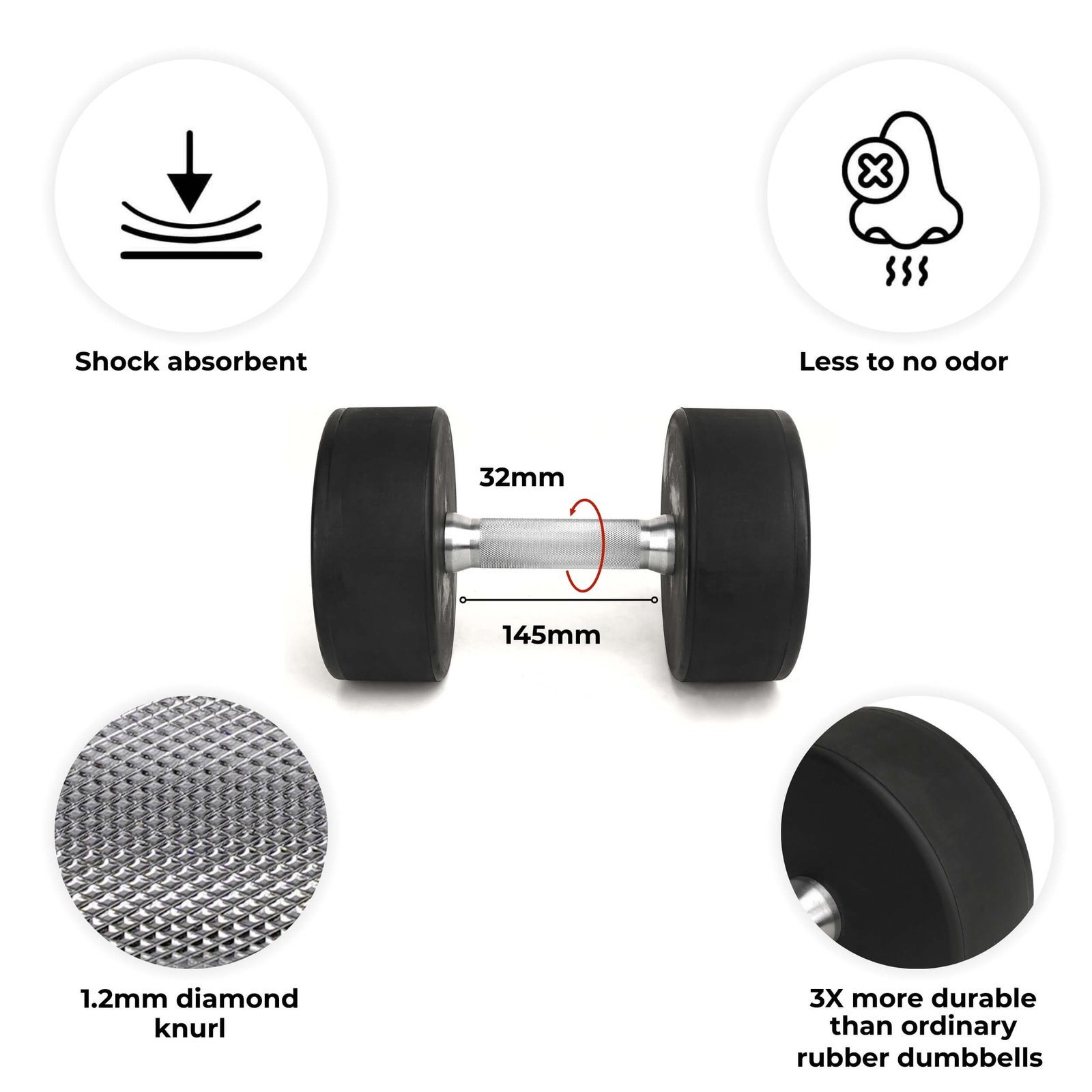 - 3X more durable than ordinary rubber dumbbells