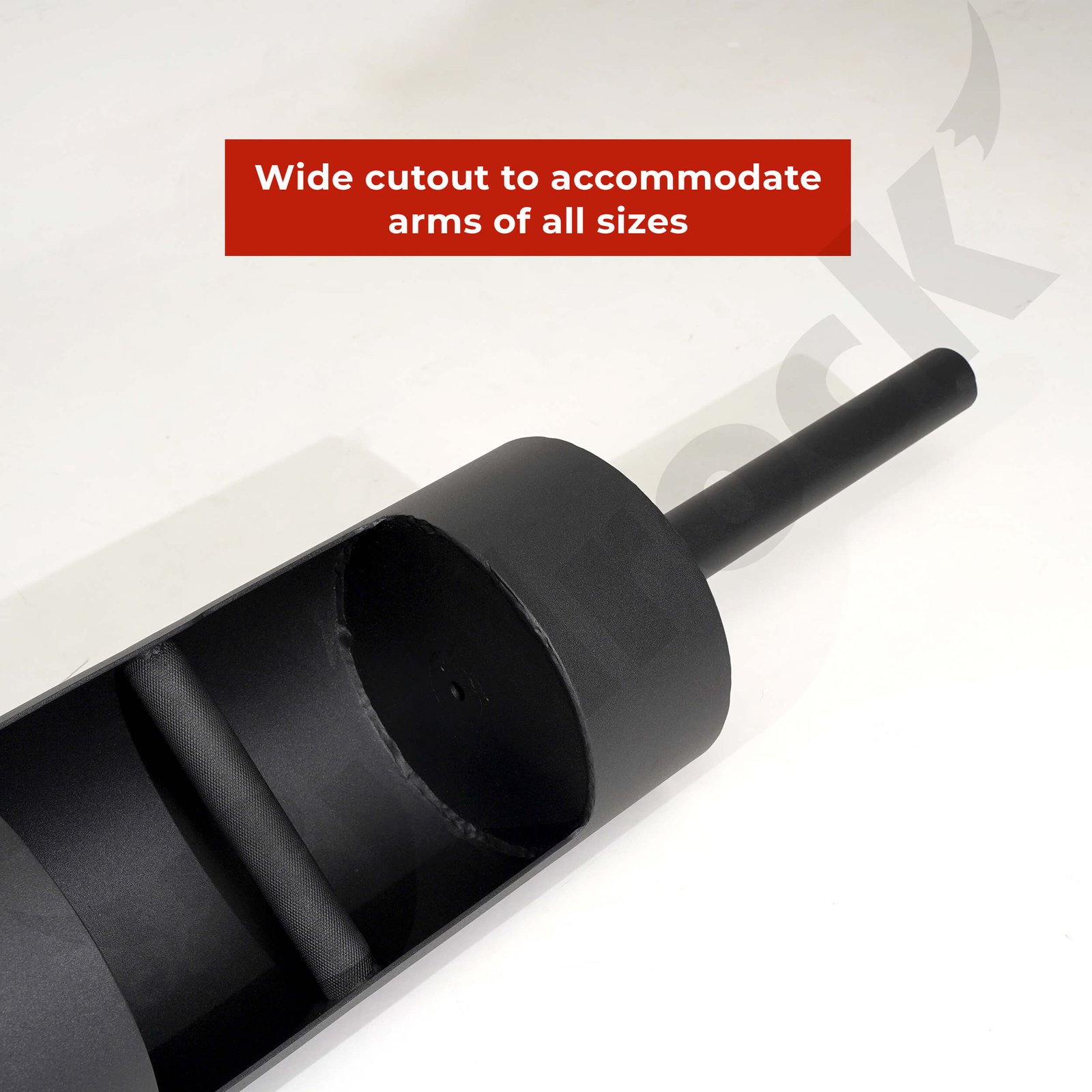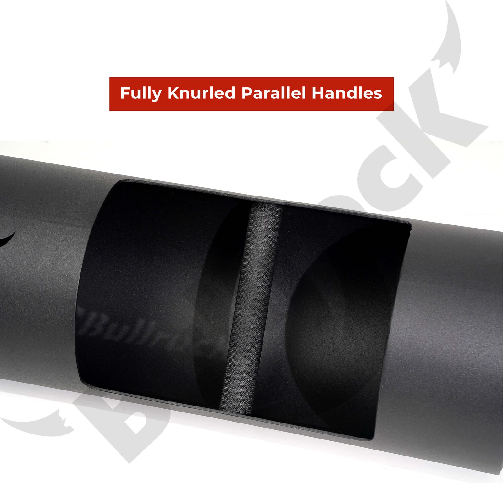 The 9” diameter log is fully welded and constructed from robust 11-gauge steel with a textured black powder coating, providing superior grip during cleans. The 8″ parallel, neutral grip handles are fully knurled, 32mm in diameter. They are strategically spaced 600mm apart for optimal balance and comfort during overhead presses, bench presses, and more. Extra-large hand holes accommodate forearm space, enhancing comfort during lifts.