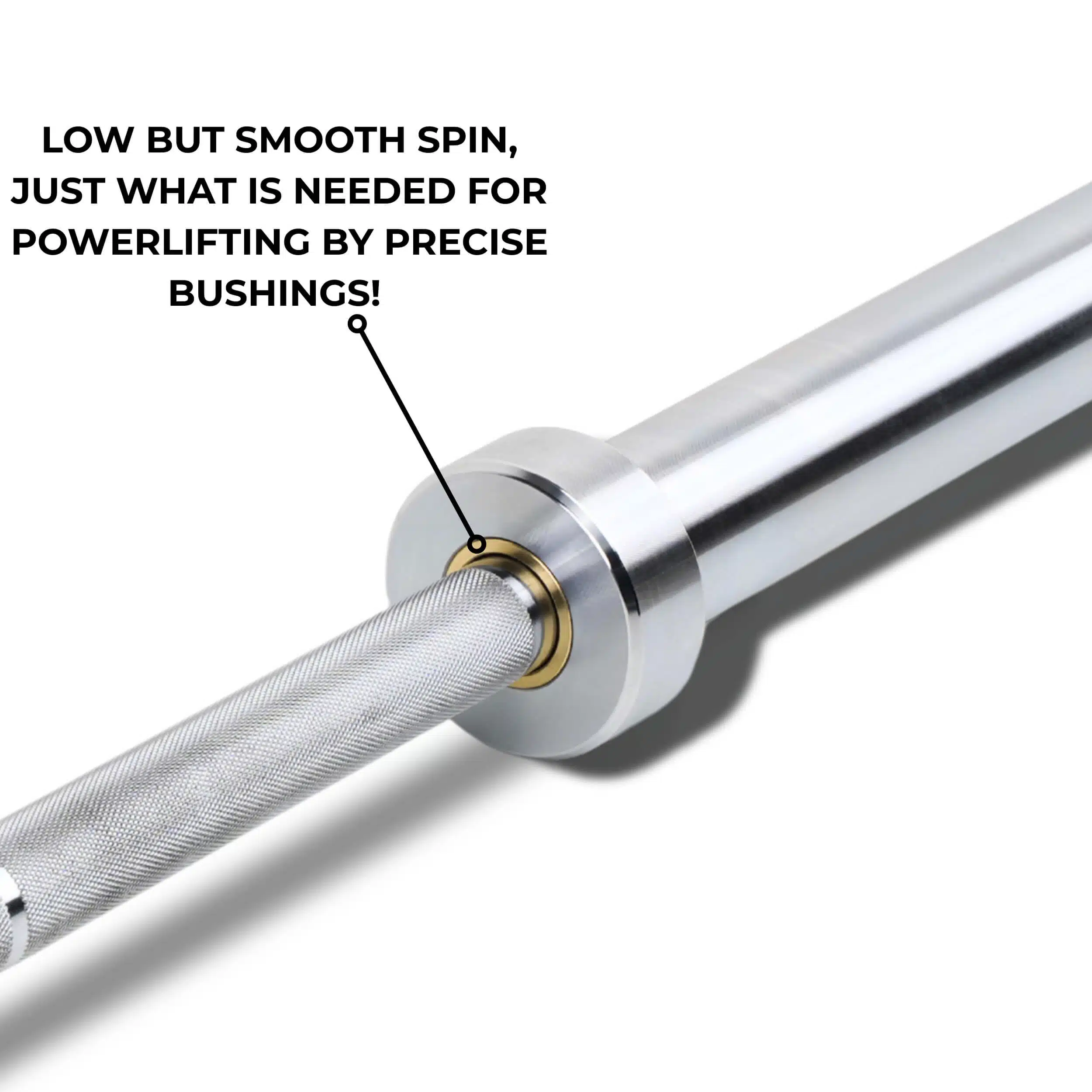 Equipped with Bushings, engineered for controlled rotation – ideal for heavy lifts like squats, bench press, and deadlifts where minimal spin ensures bar stability.