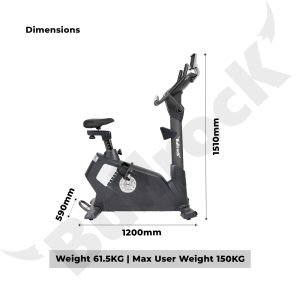 It takes a footprint of 1200x590x1510mm, weighing 61.5kg and can take a user of max weight 150kg