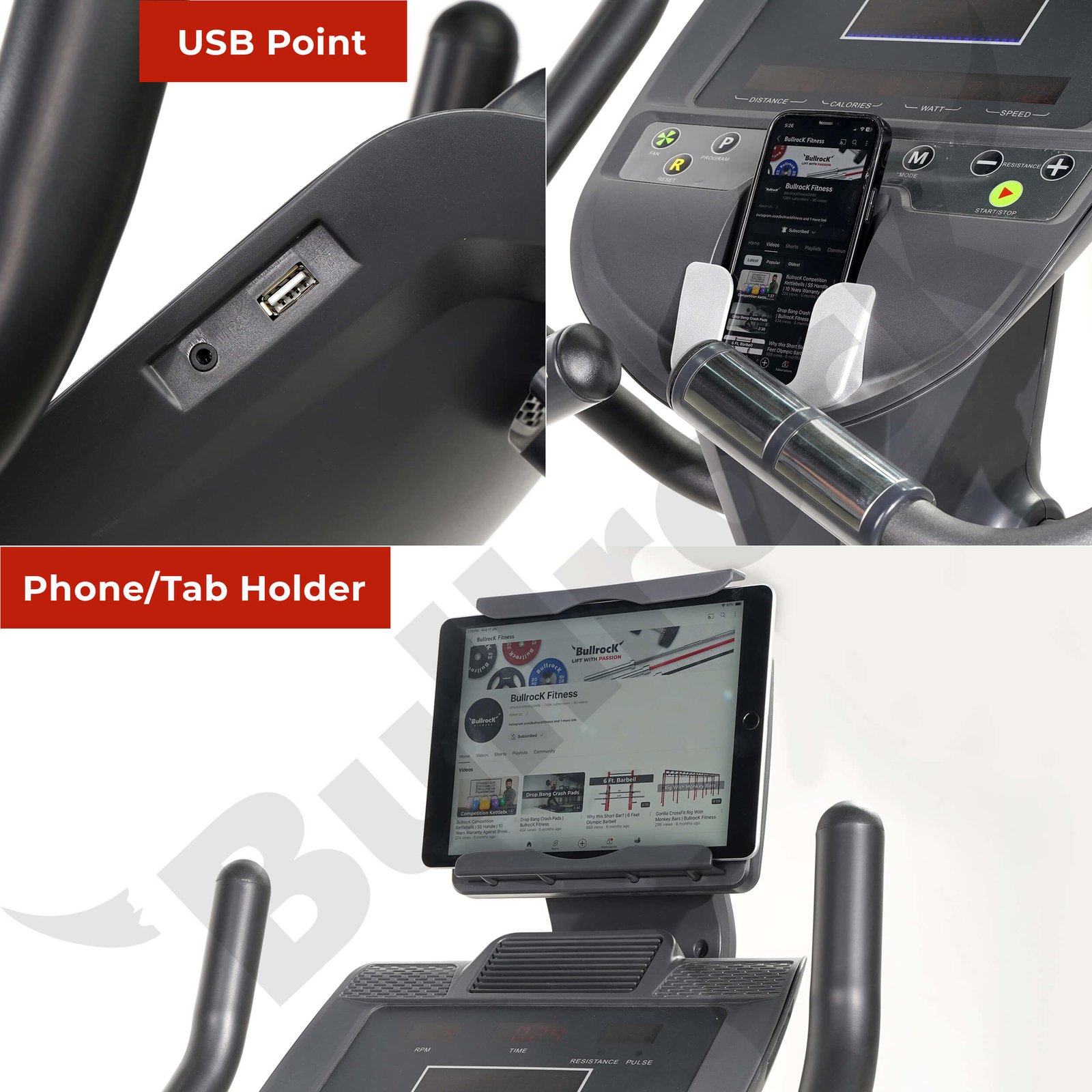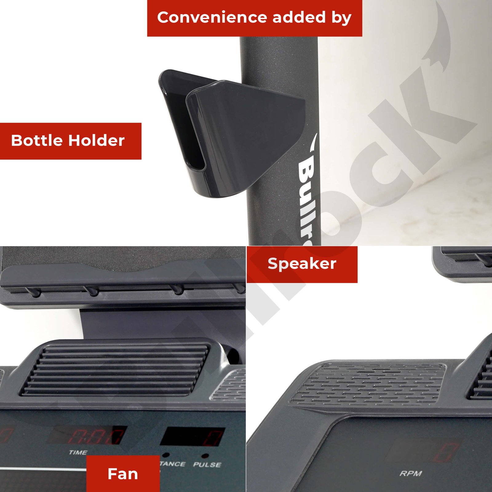 The saddle post is adjustable to a customized position via convenient knob, and the textured peddles secure the feet with straps. Additionally, it features convenience features such as USB Charger, MP3 Socket + Speakers and a Fan
