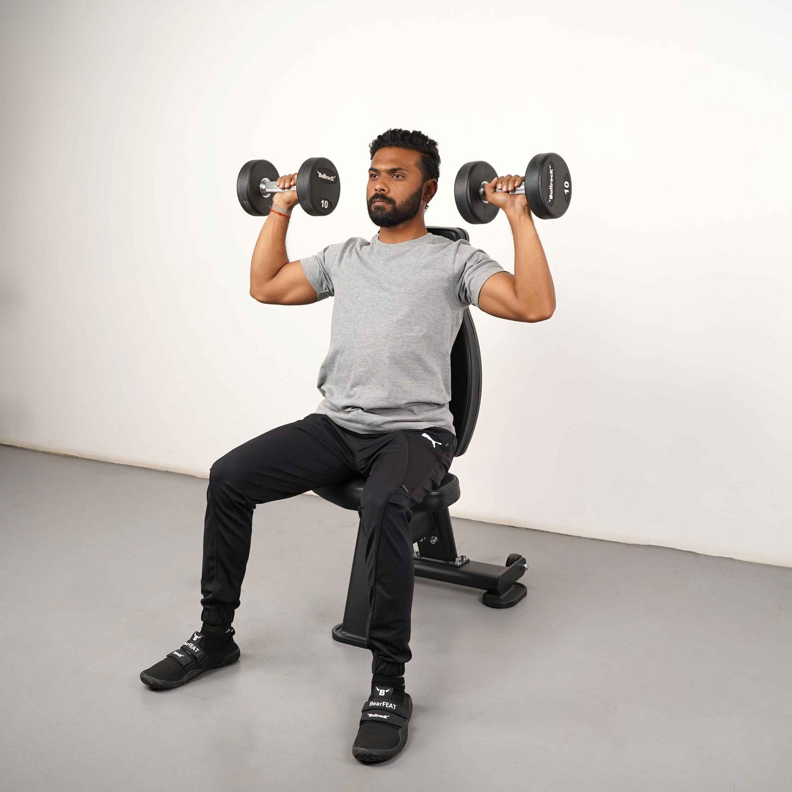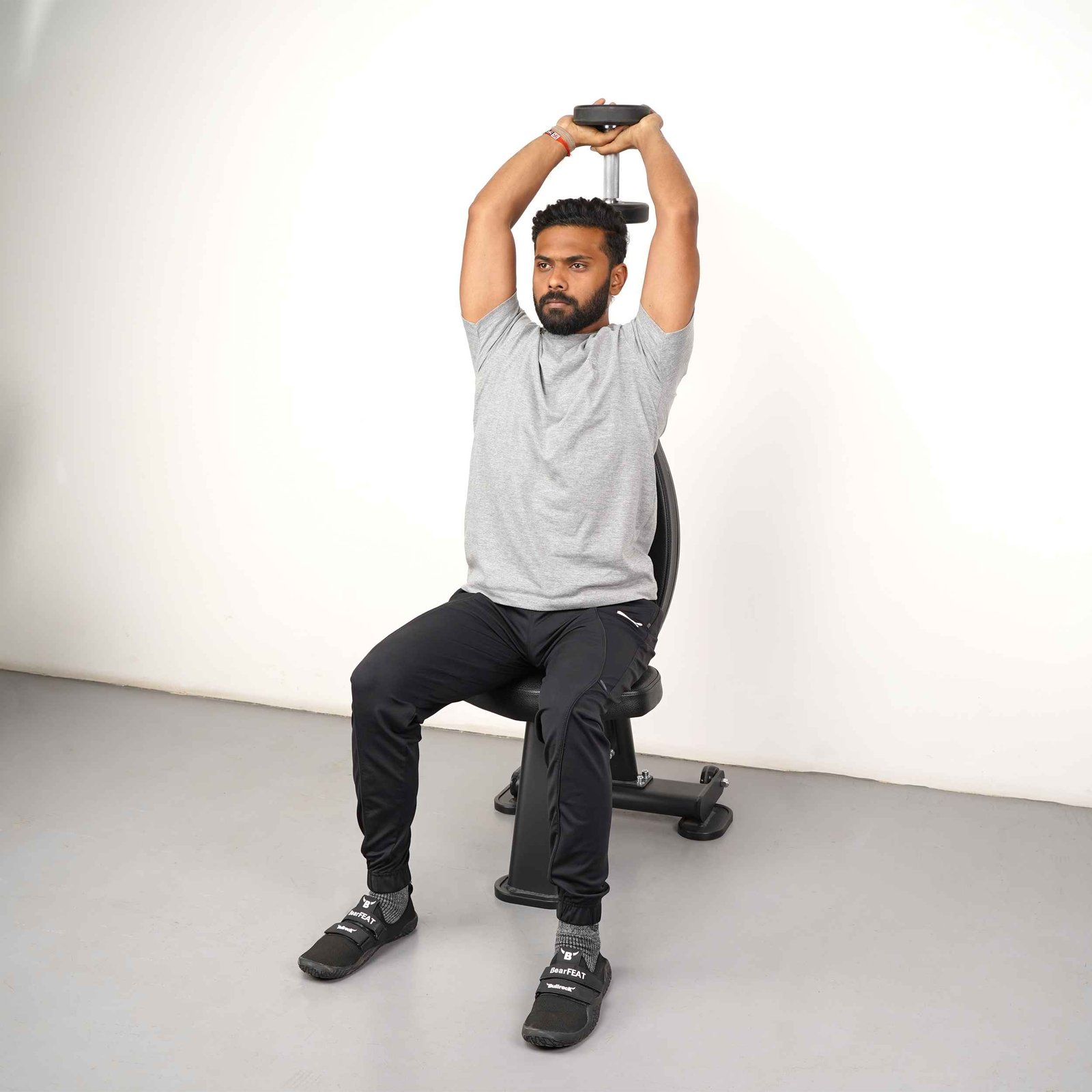 A compact upright bench built for overhead strength and upper body precision.