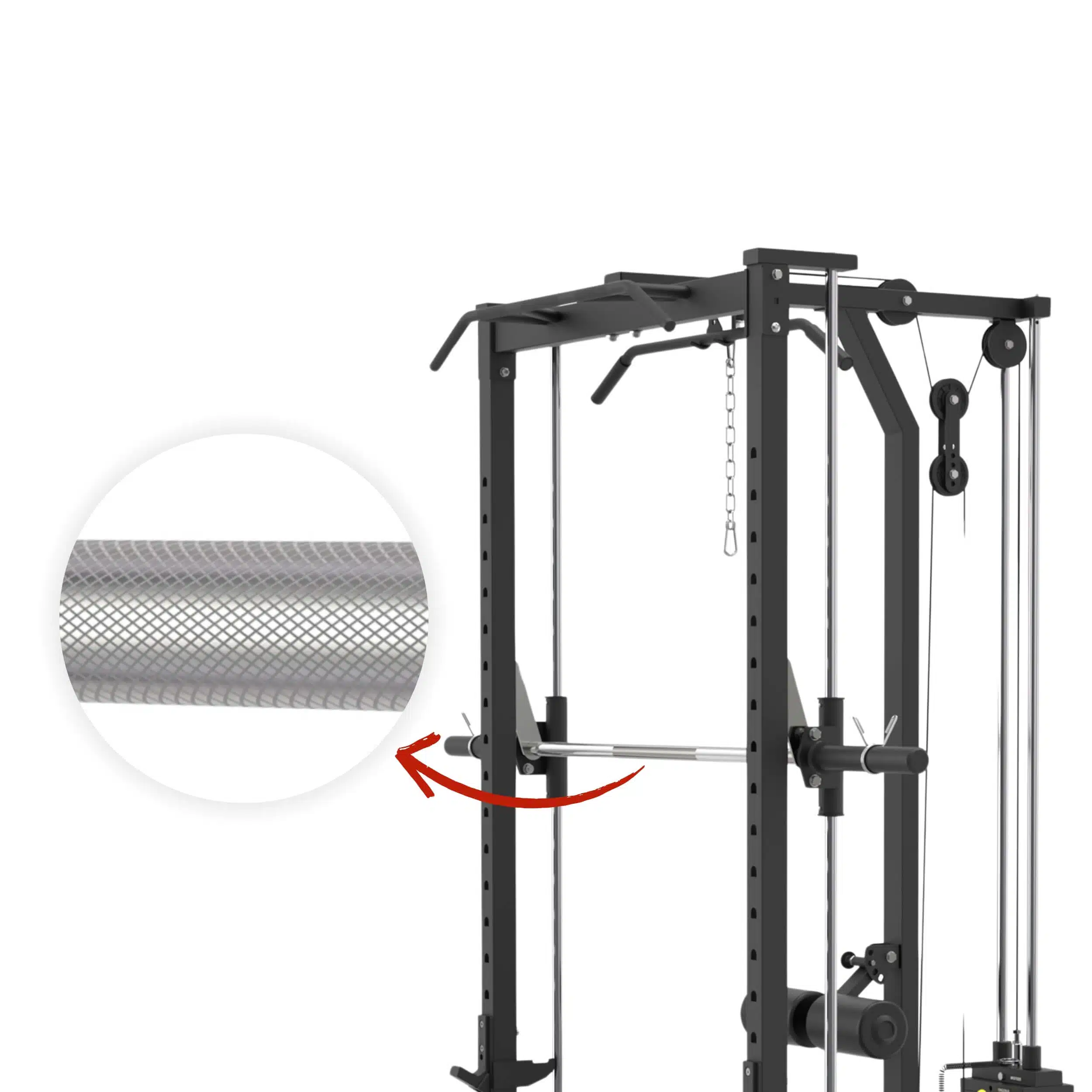 Multi-Grip Knurled Pull-up handles give extensive range of grip options for effective muscle targeting.