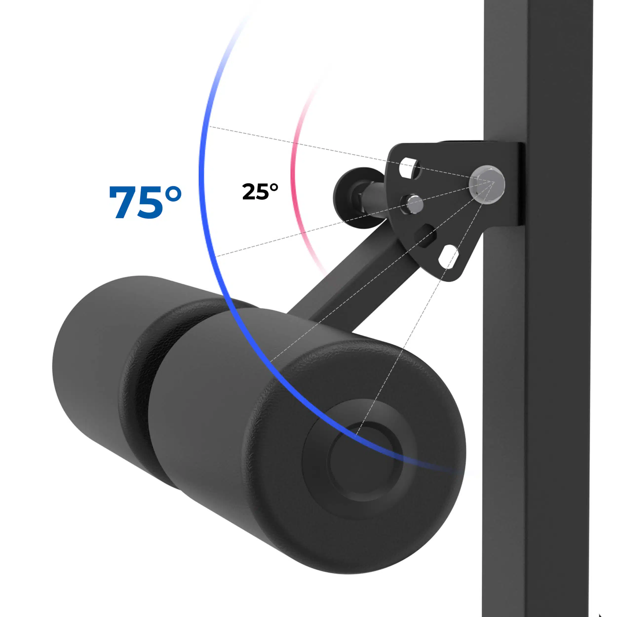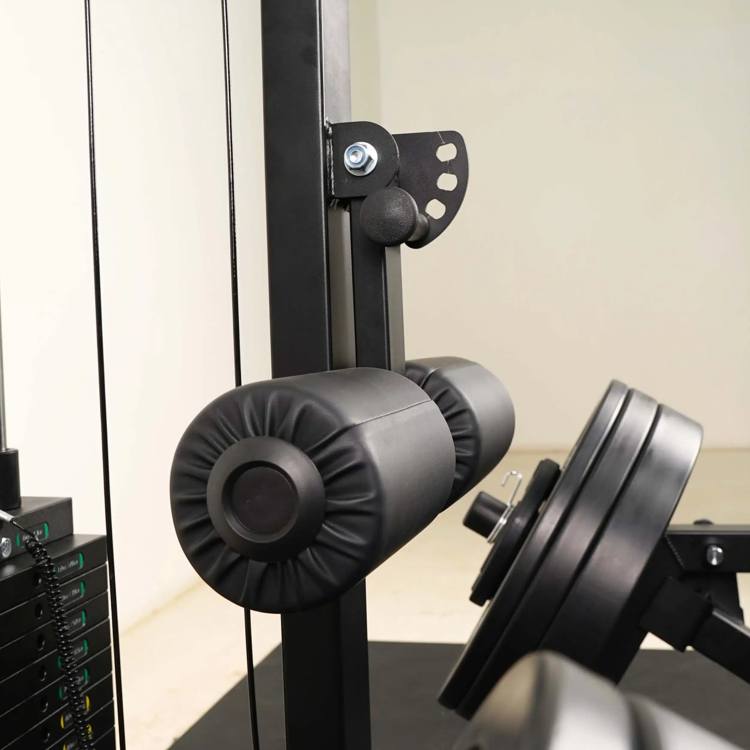 Adjustable Leg Locking Rollers can be turned parallel to upright when performing Biceps/ Triceps Cable Exercises.
